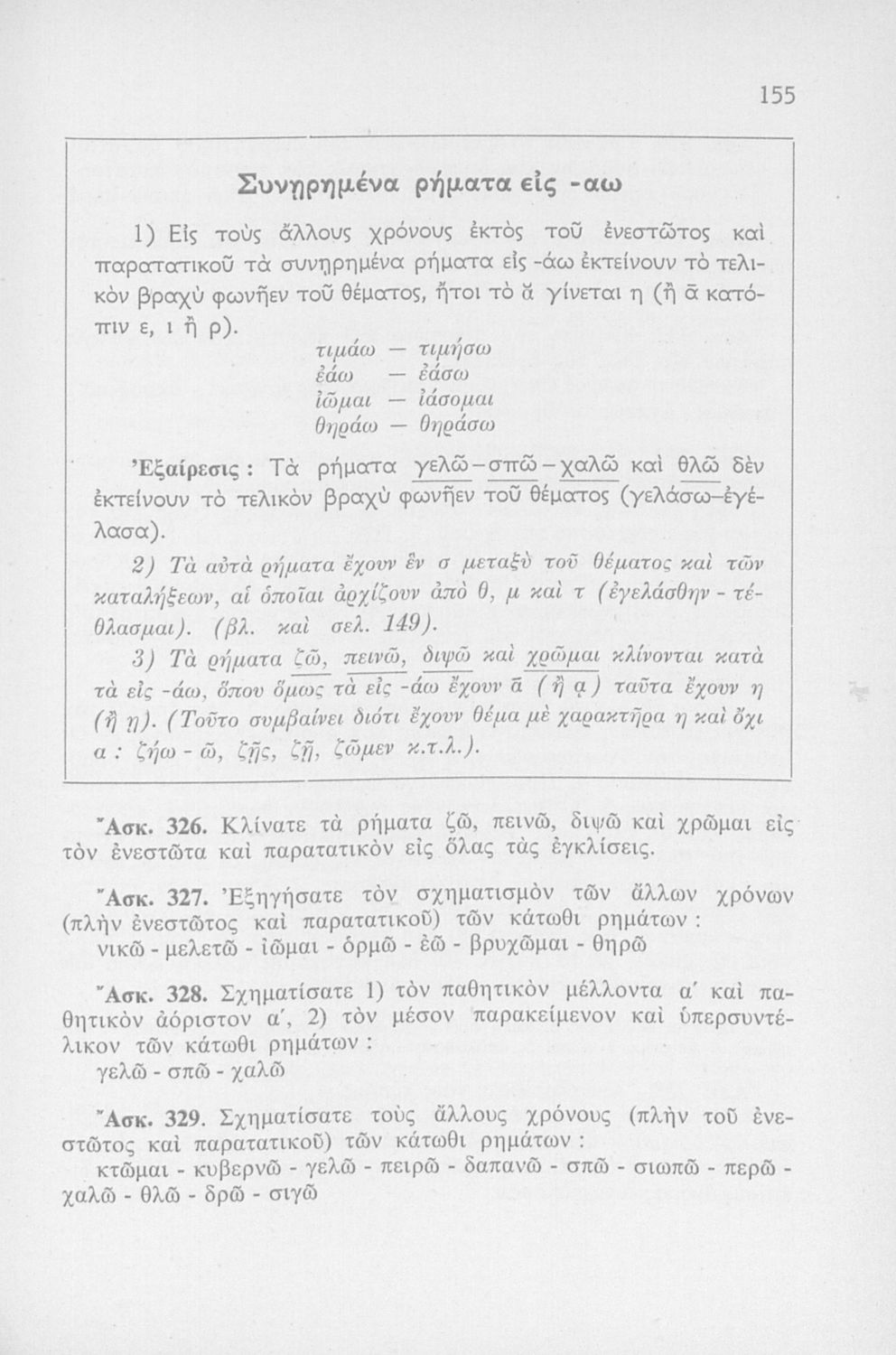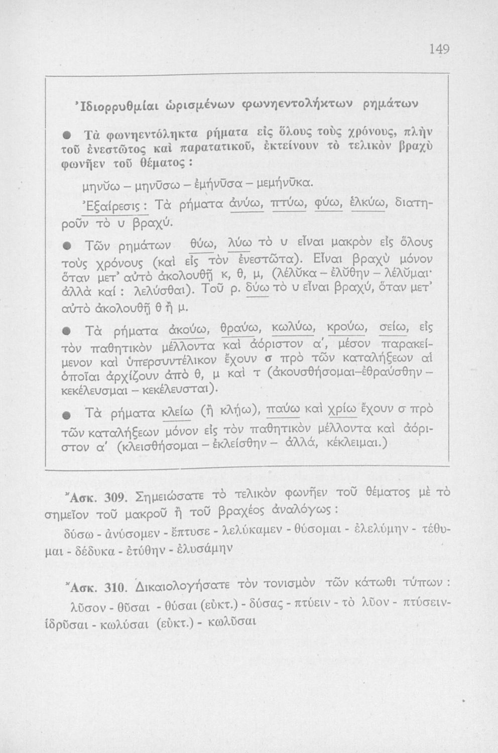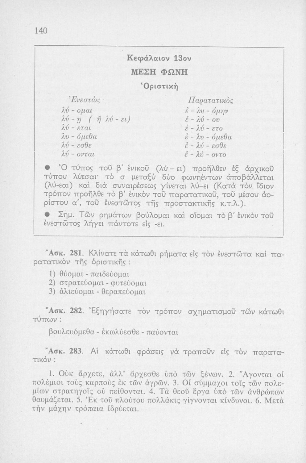 Σχολικό εγχειρίδιο Αρχαίων Ελληνικών Γυμνασίου που περιλαμβάνει τη γραμματική της αρχαίας ελληνικής και είναι χωρισμένο σε φθογγολογικό και τυπολογικό μέρος Περιέχει και κατάλογο ανωμάλων ρημάτων, ασκήσεις και