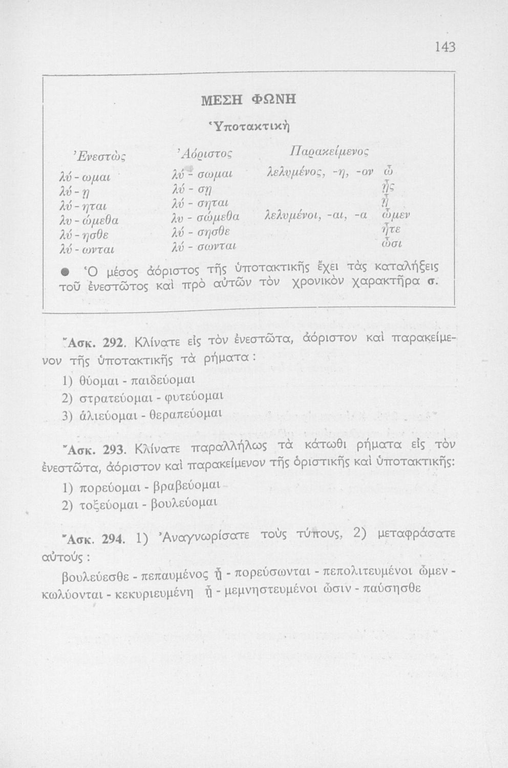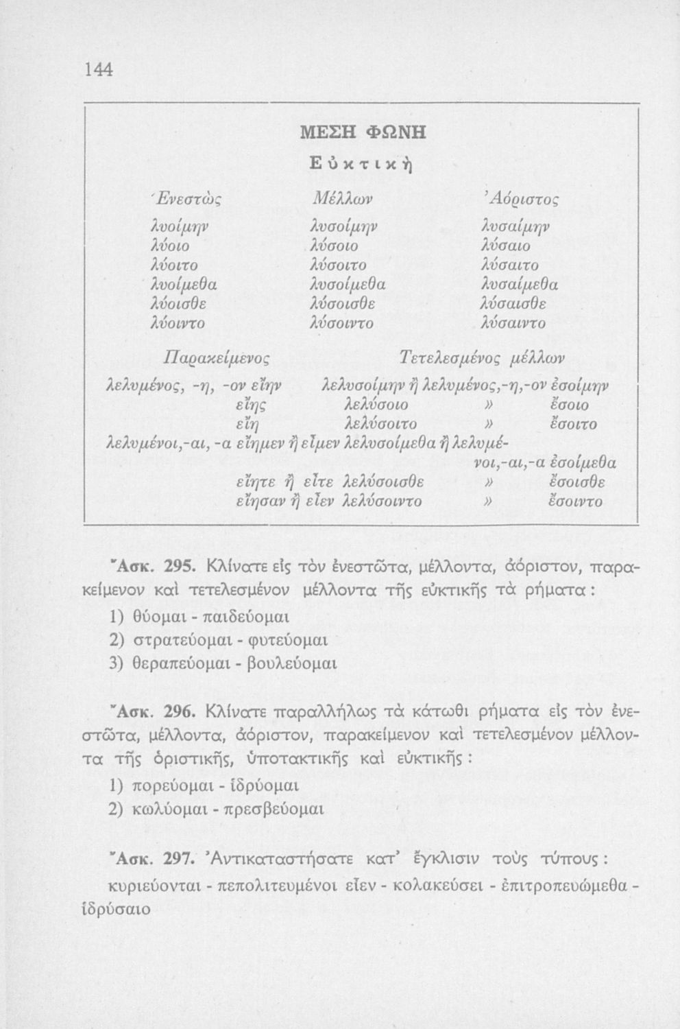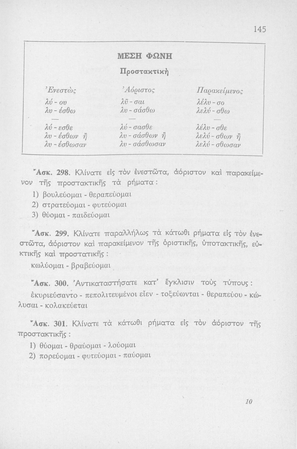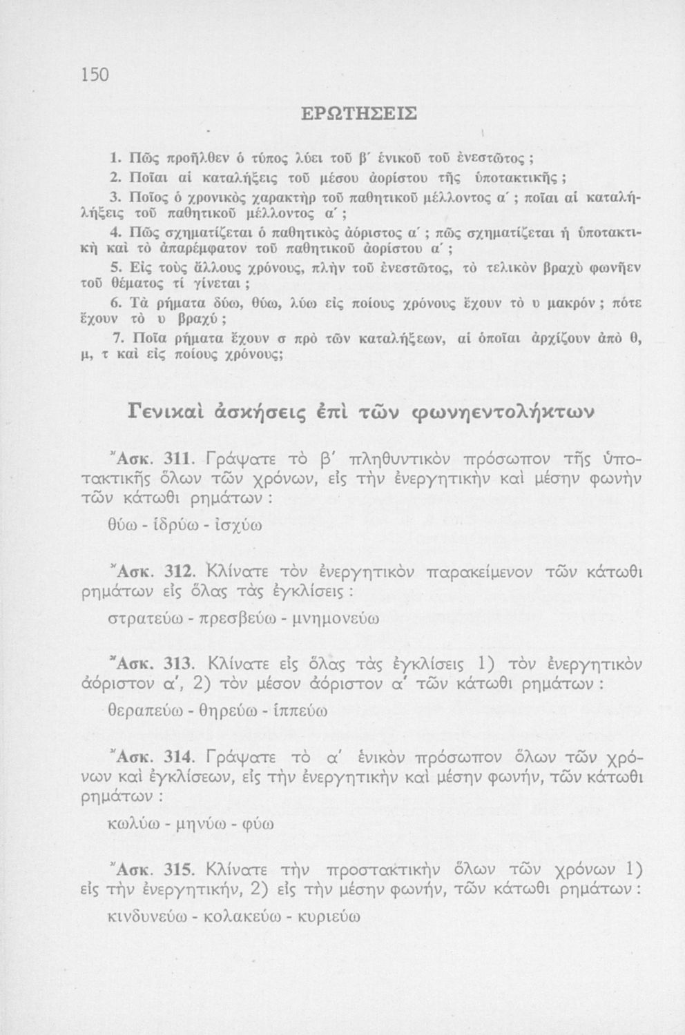 Σχολικό εγχειρίδιο Αρχαίων Ελληνικών Γυμνασίου που περιλαμβάνει τη γραμματική της αρχαίας ελληνικής και είναι χωρισμένο σε φθογγολογικό και τυπολογικό μέρος Περιέχει και κατάλογο ανωμάλων ρημάτων, ασκήσεις και