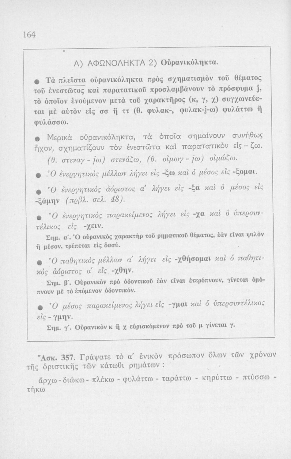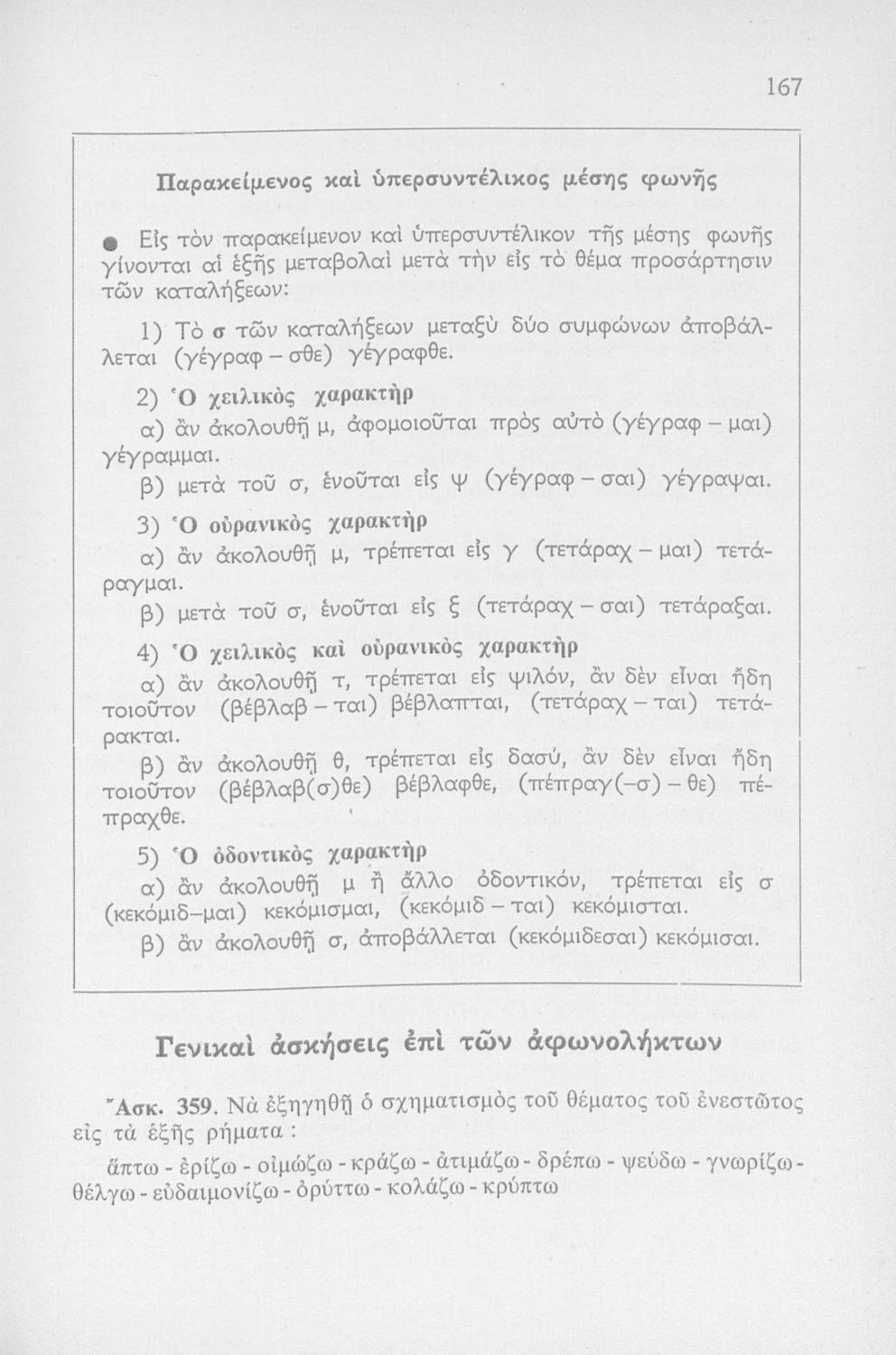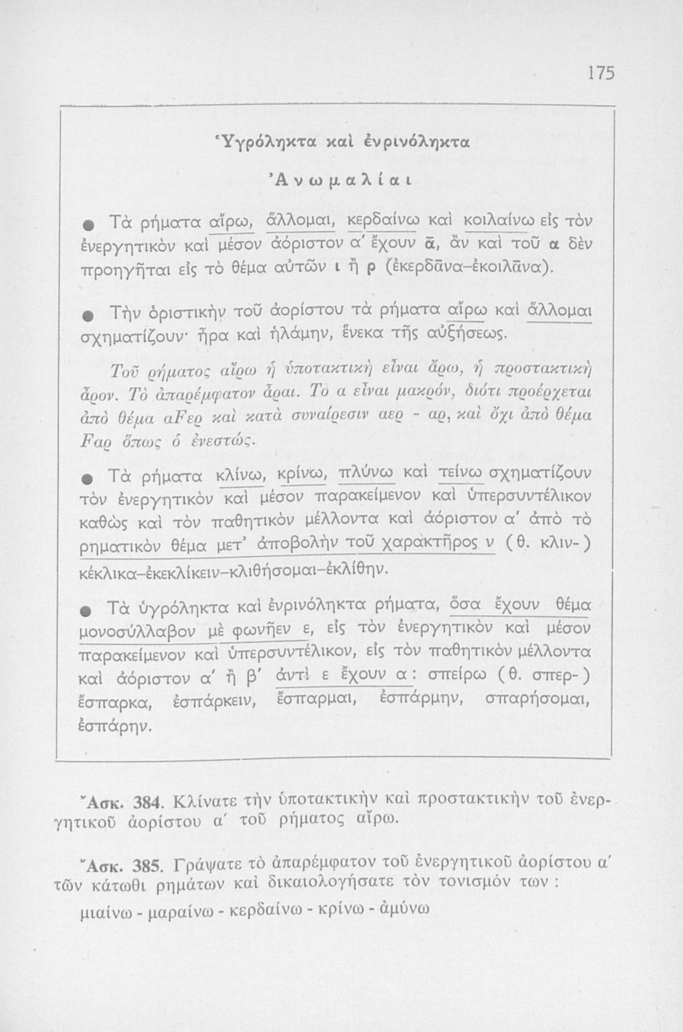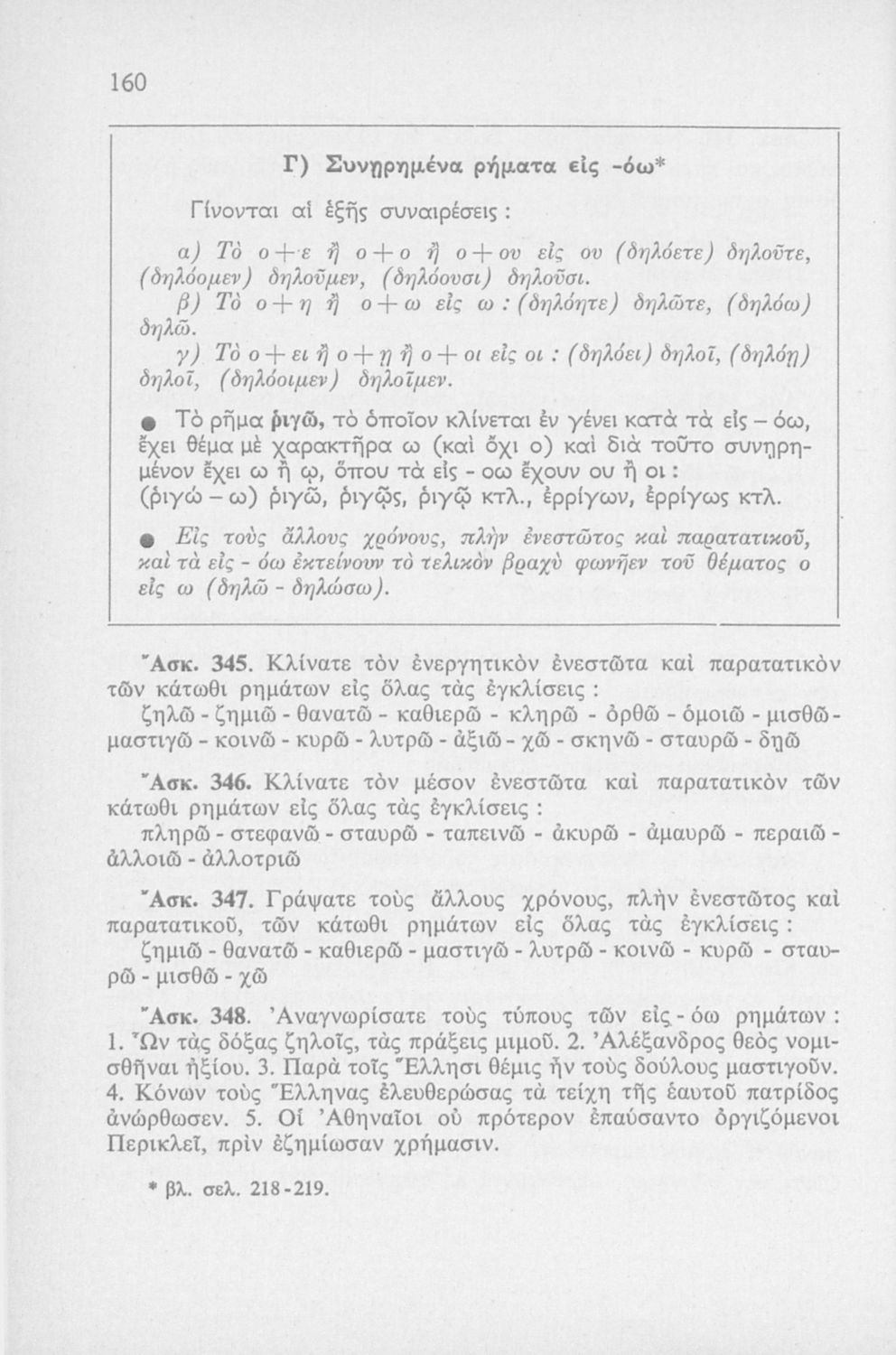 Σχολικό εγχειρίδιο Αρχαίων Ελληνικών Γυμνασίου που περιλαμβάνει τη γραμματική της αρχαίας ελληνικής και είναι χωρισμένο σε φθογγολογικό και τυπολογικό μέρος Περιέχει και κατάλογο ανωμάλων ρημάτων, ασκήσεις και