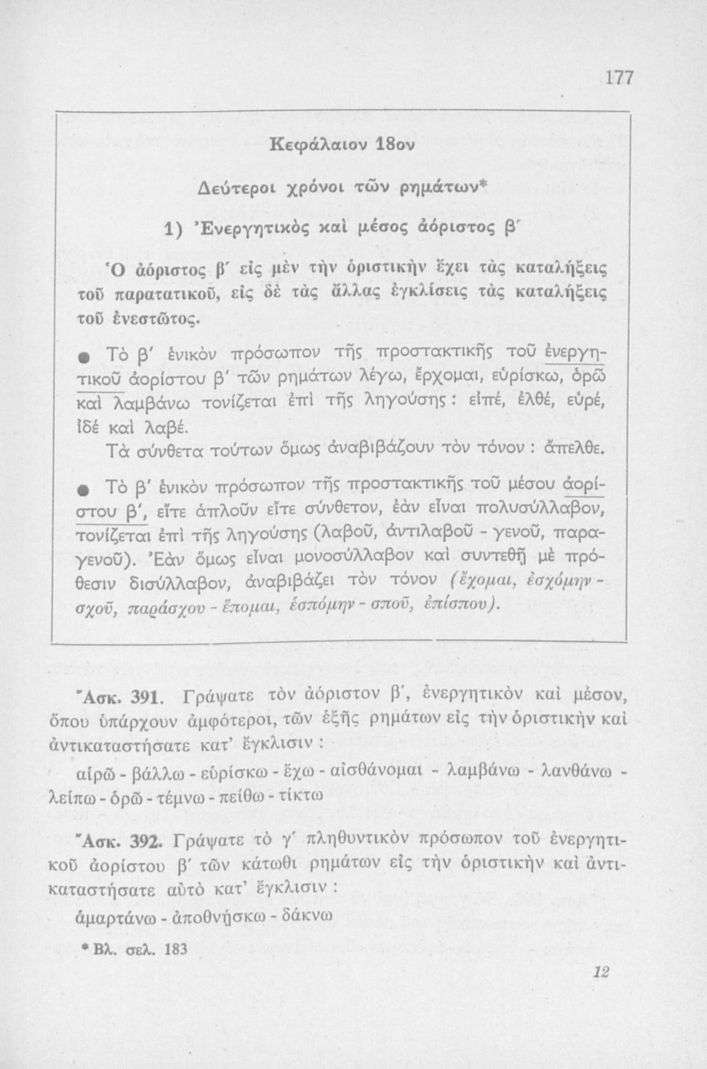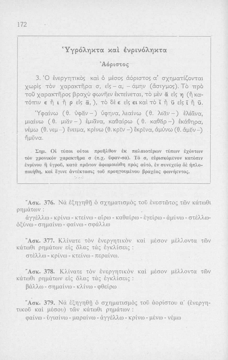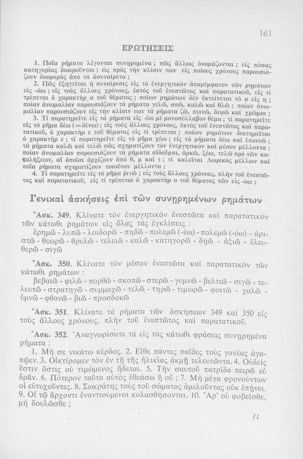 Μαθήματα και ασκήσεις αρχαίας ελληνικής γραμματικής (Βοήθημα προς χρήσιν των μαθητών Γυμνασίου)