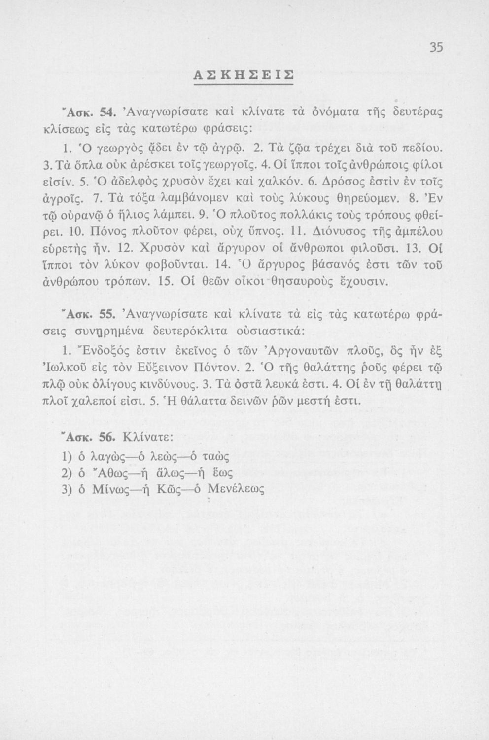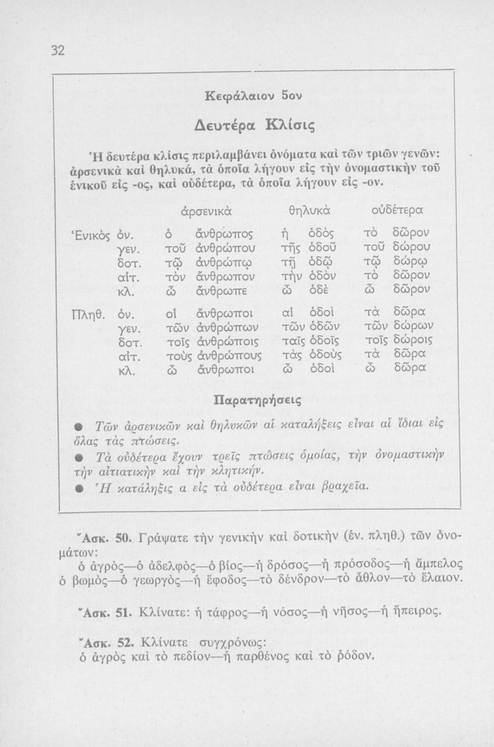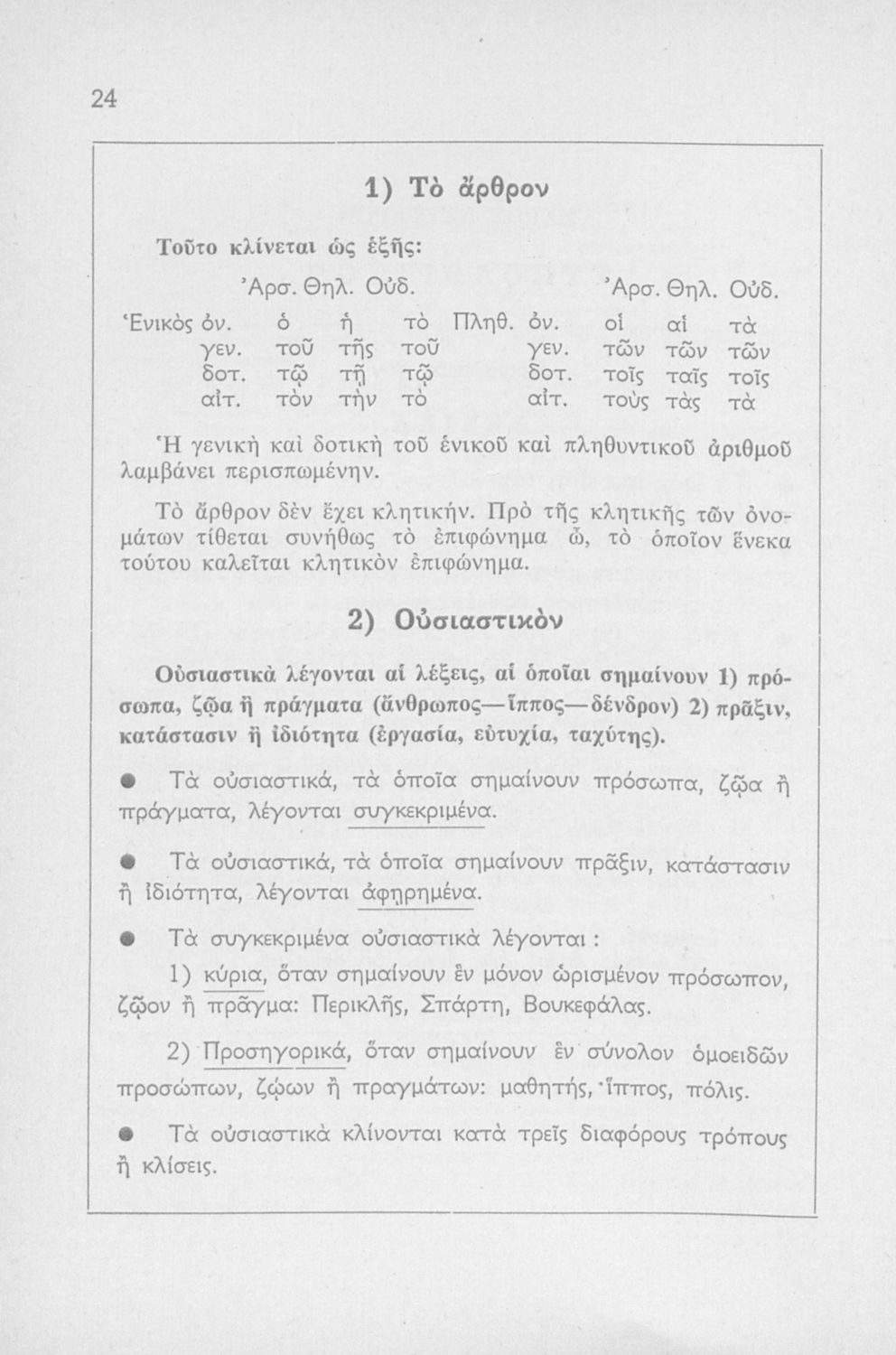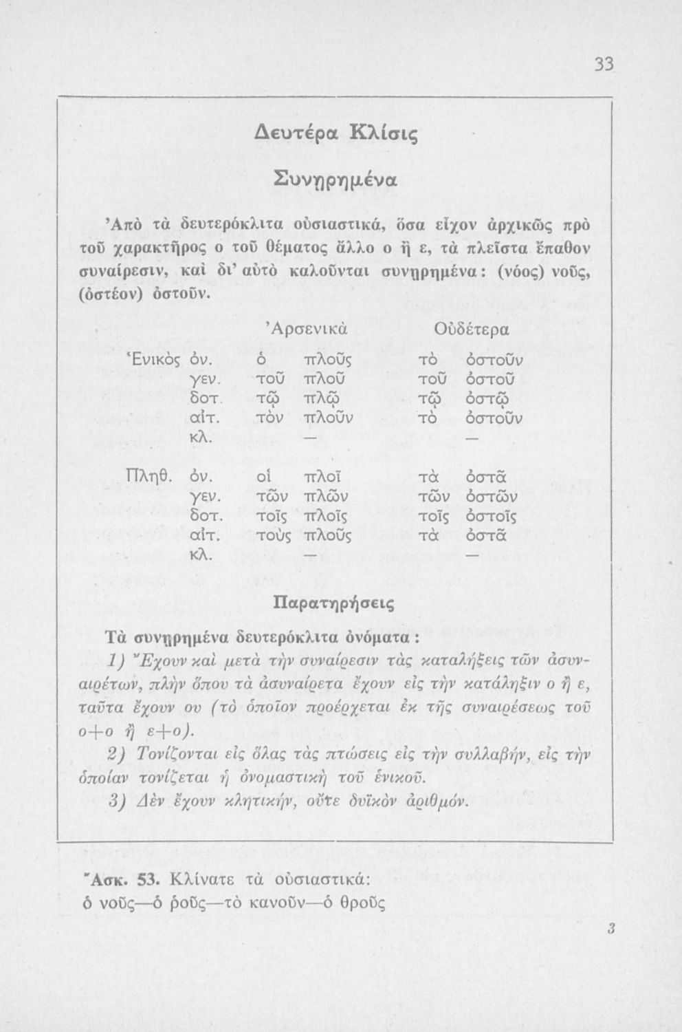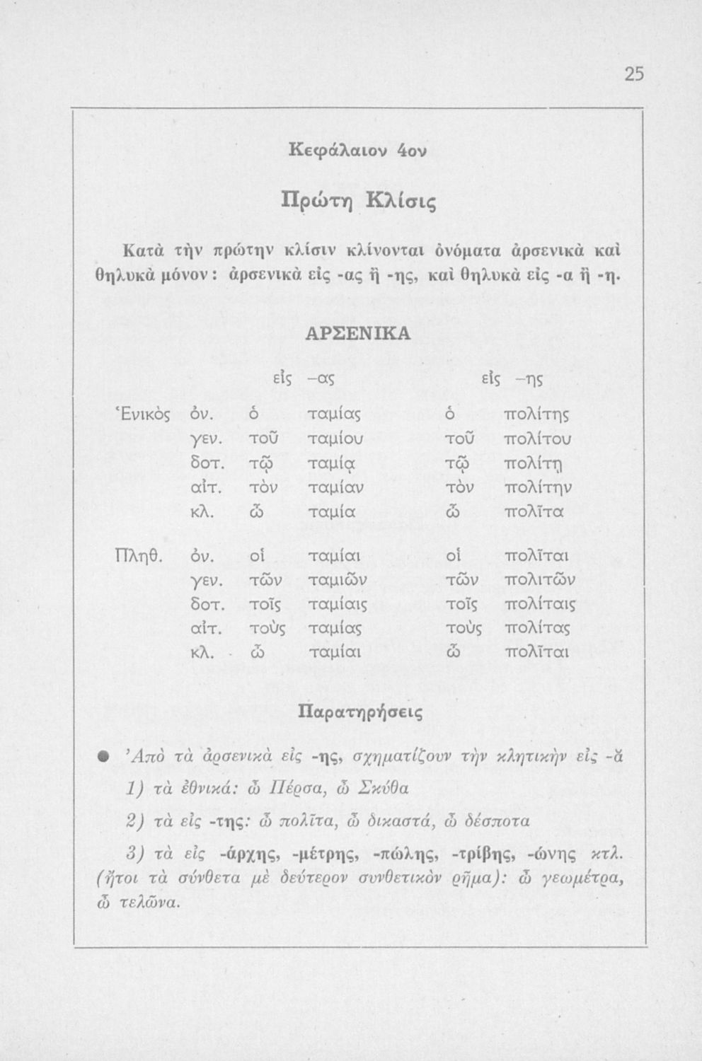 Σχολικό εγχειρίδιο Αρχαίων Ελληνικών Γυμνασίου που περιλαμβάνει τη γραμματική της αρχαίας ελληνικής και είναι χωρισμένο σε φθογγολογικό και τυπολογικό μέρος Περιέχει και κατάλογο ανωμάλων ρημάτων, ασκήσεις και