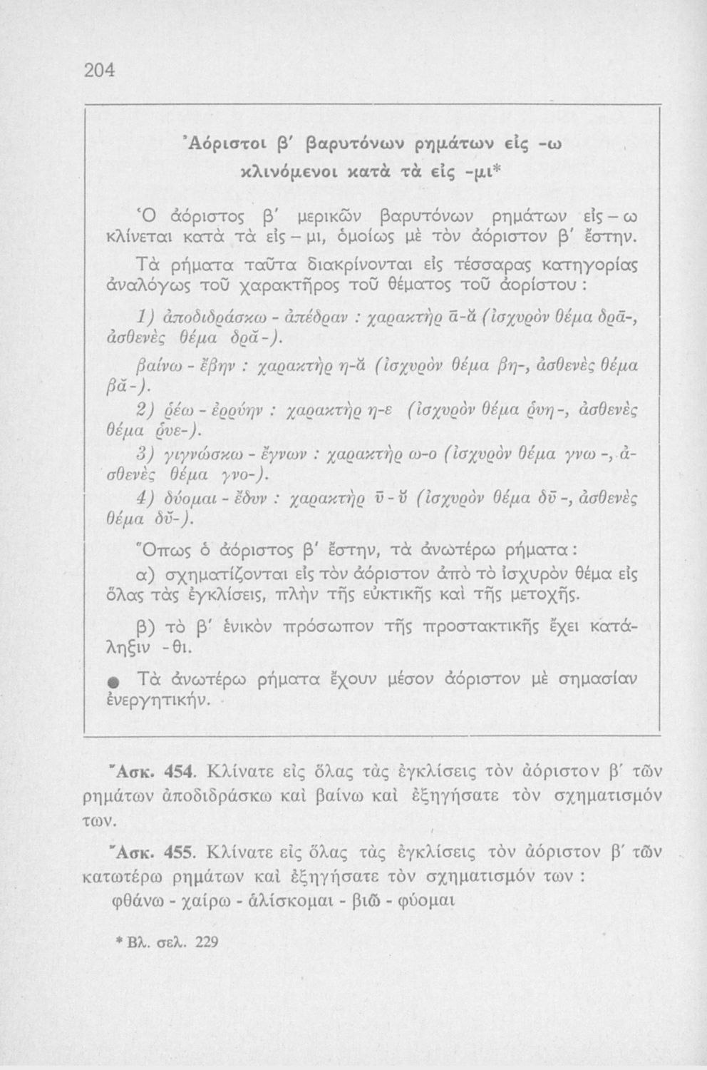 • ΑΟΡΙΣΤΟΙ. Β' ΒΑΡΥΤΟΝΩΝ ΡΗΜΑΤΩΝ ΣΕ - Ω