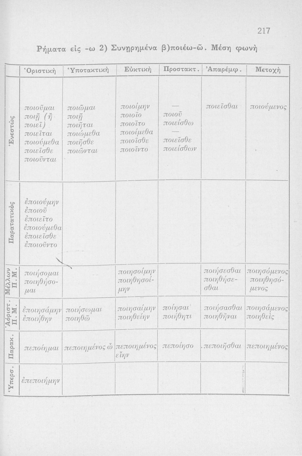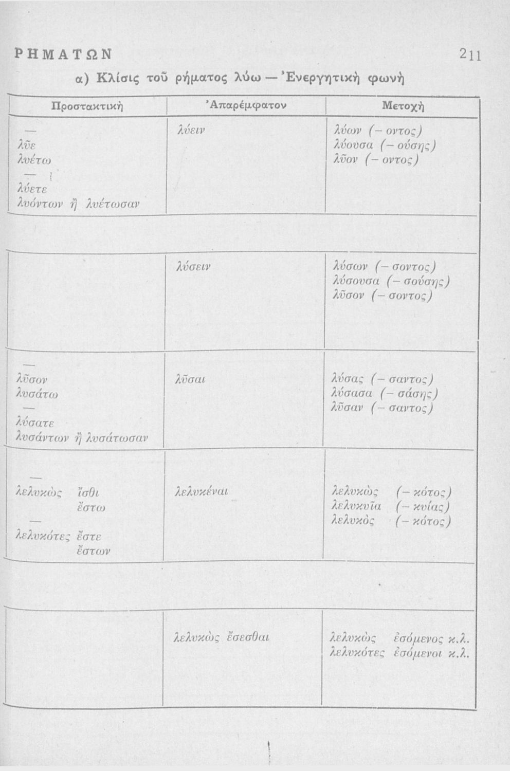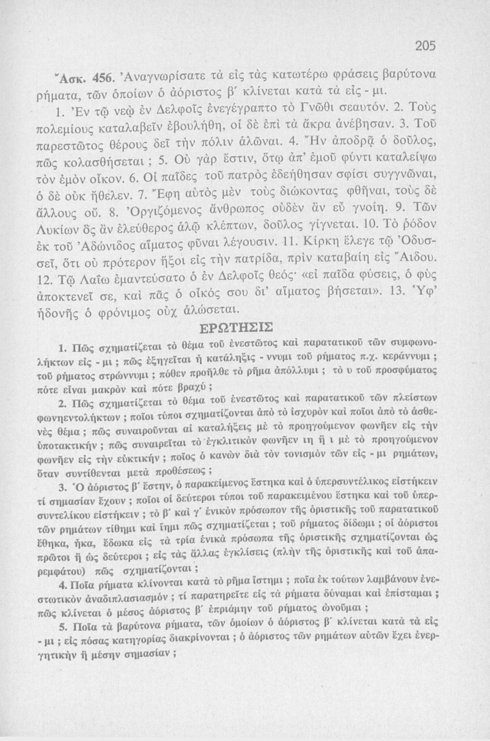 Σχολικό εγχειρίδιο Αρχαίων Ελληνικών Γυμνασίου που περιλαμβάνει τη γραμματική της αρχαίας ελληνικής και είναι χωρισμένο σε φθογγολογικό και τυπολογικό μέρος Περιέχει και κατάλογο ανωμάλων ρημάτων, ασκήσεις και