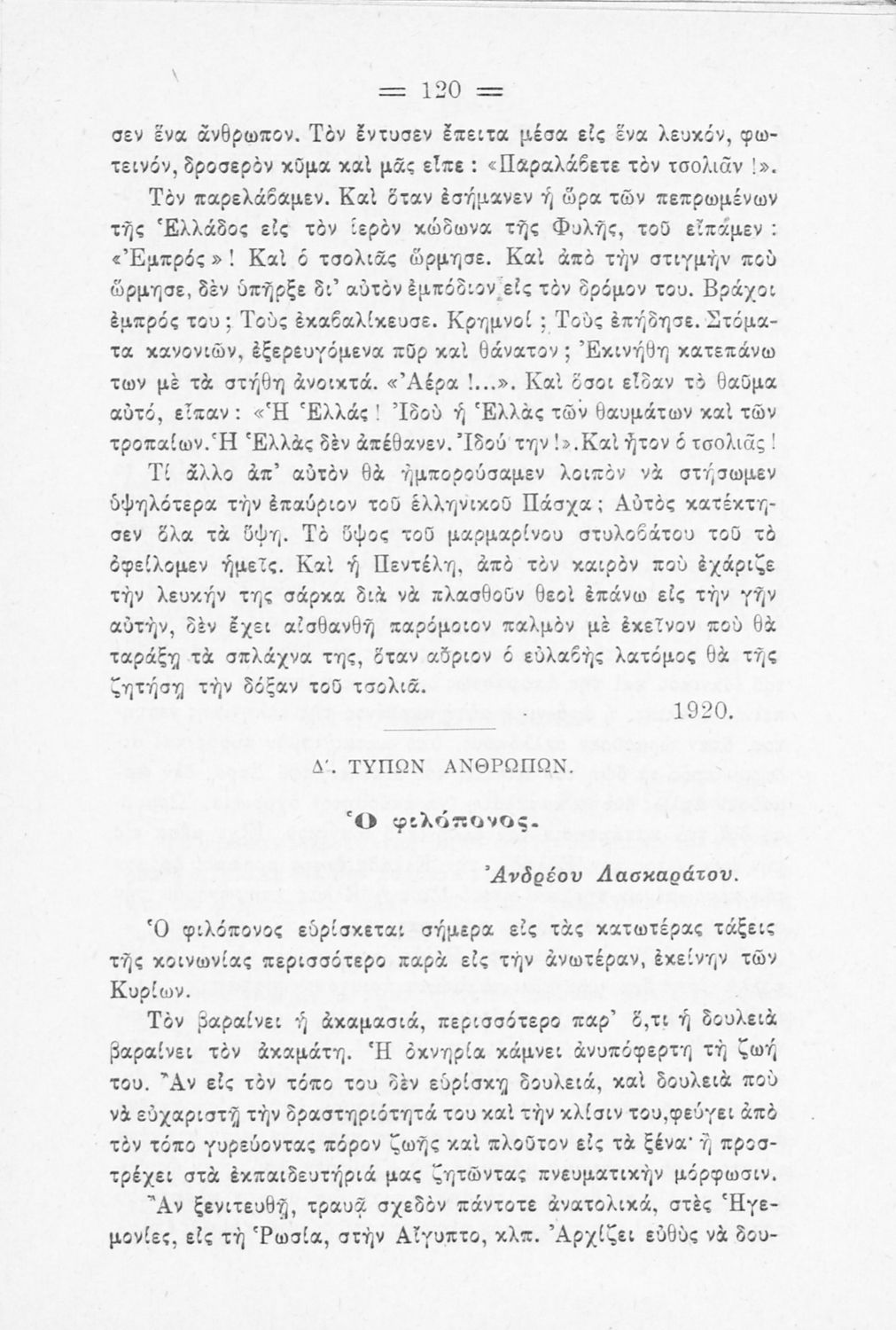 Σχολικό εγχειρίδιο Νέων Ελληνικών Α΄ τάξη των Τετραταξίων Γυμνασίων που περιλαμβάνει πεζά, ποιήματα και παροιμίες Ελλήνων συγγραφέων με έντονο εθνικό προσανατολισμό. Περιέχει παράρτημα με βιογραφίες των συγγραφέων και λεξιλόγιο.