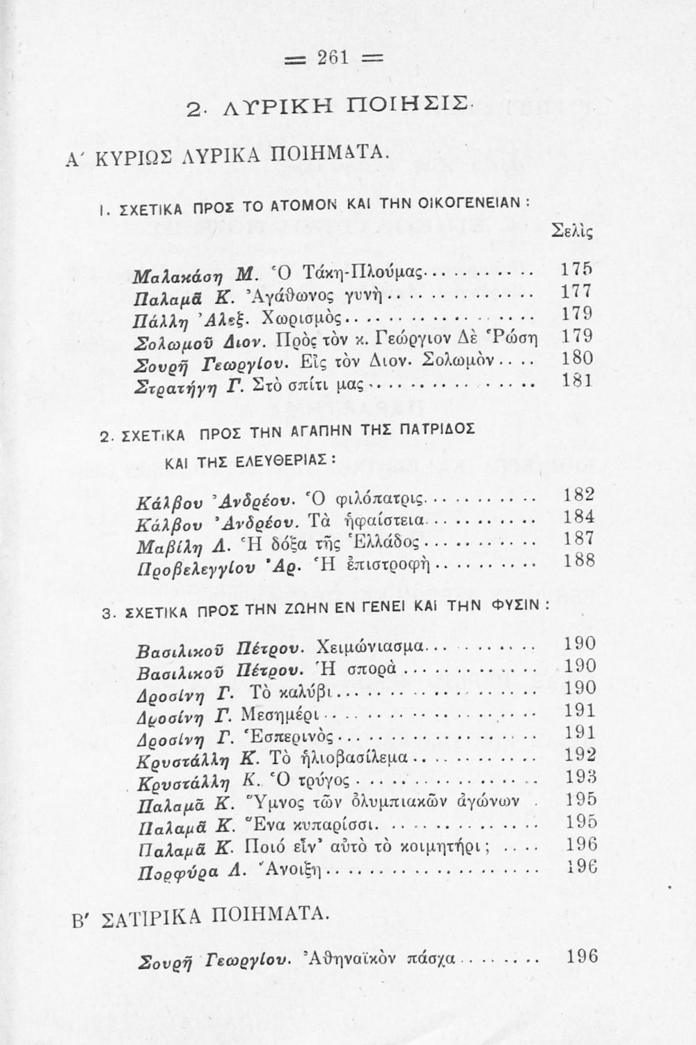 Σχολικό εγχειρίδιο για την Β΄ Γυμνασίου και την Γ΄ Αστικού Θηλέων για το μάθημα των Νέων Ελληνικών. Το εγχειρίδιο αποτελείται από κείμενα πεζού λόγου, επικολυρικά ποιήματα, ωδές, ηθογραφικά διηγήματα, ρητορικά