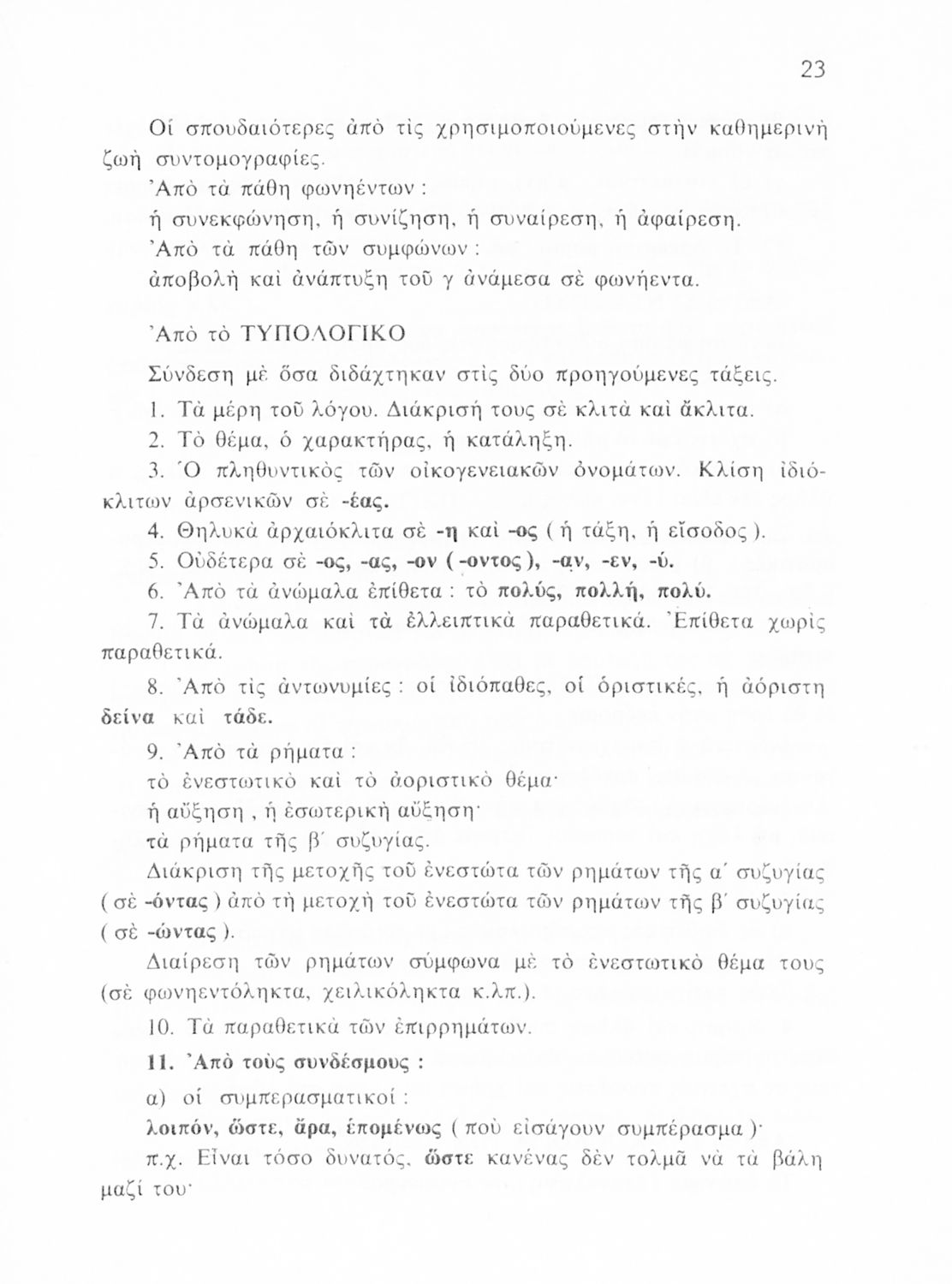 Παιδαγωγικό βοήθημα που περιλαμβάνει οδηγίες για τη διδασκαλία της γραμματικής στους μαθητές του Δημοτικού.