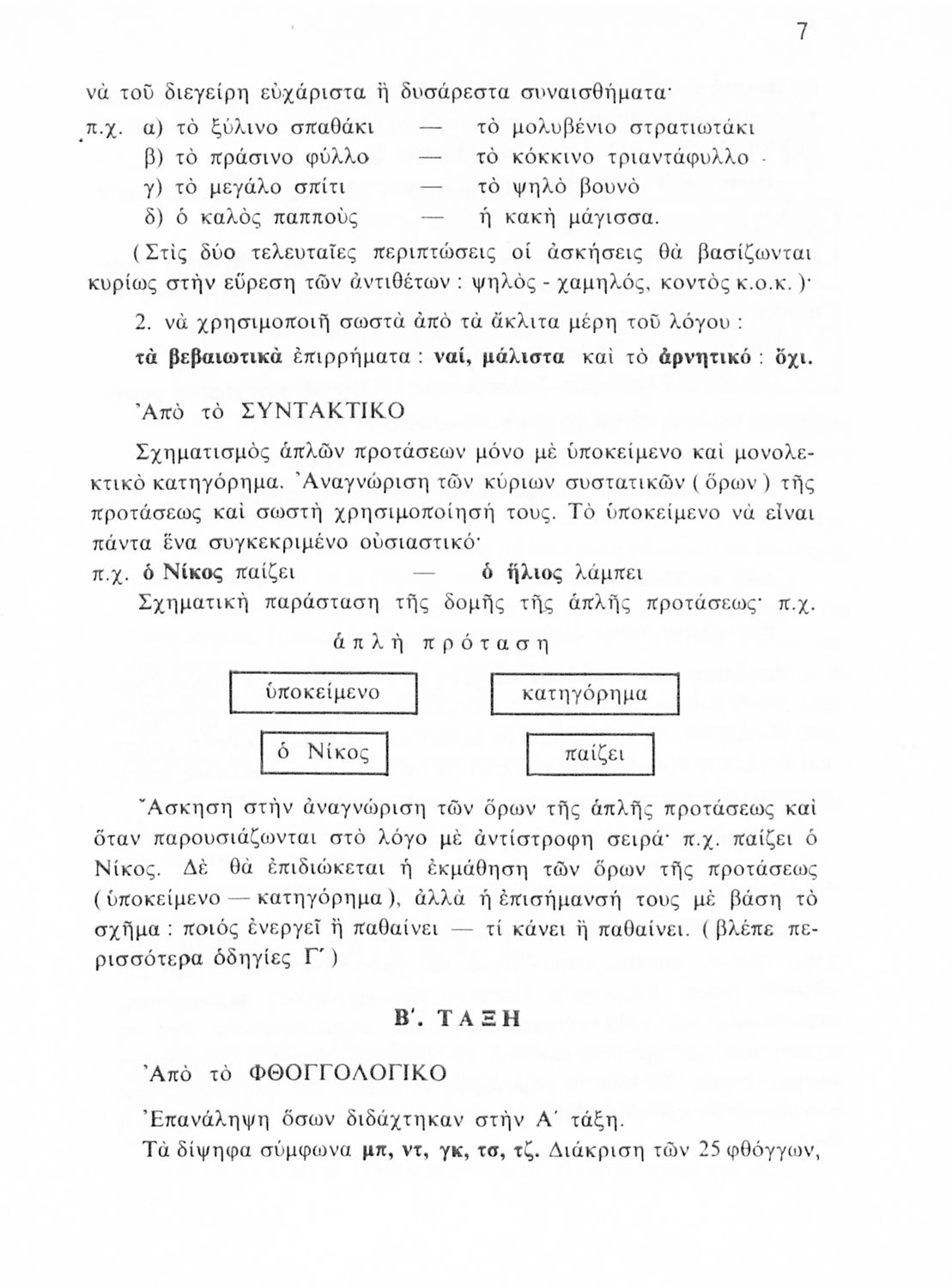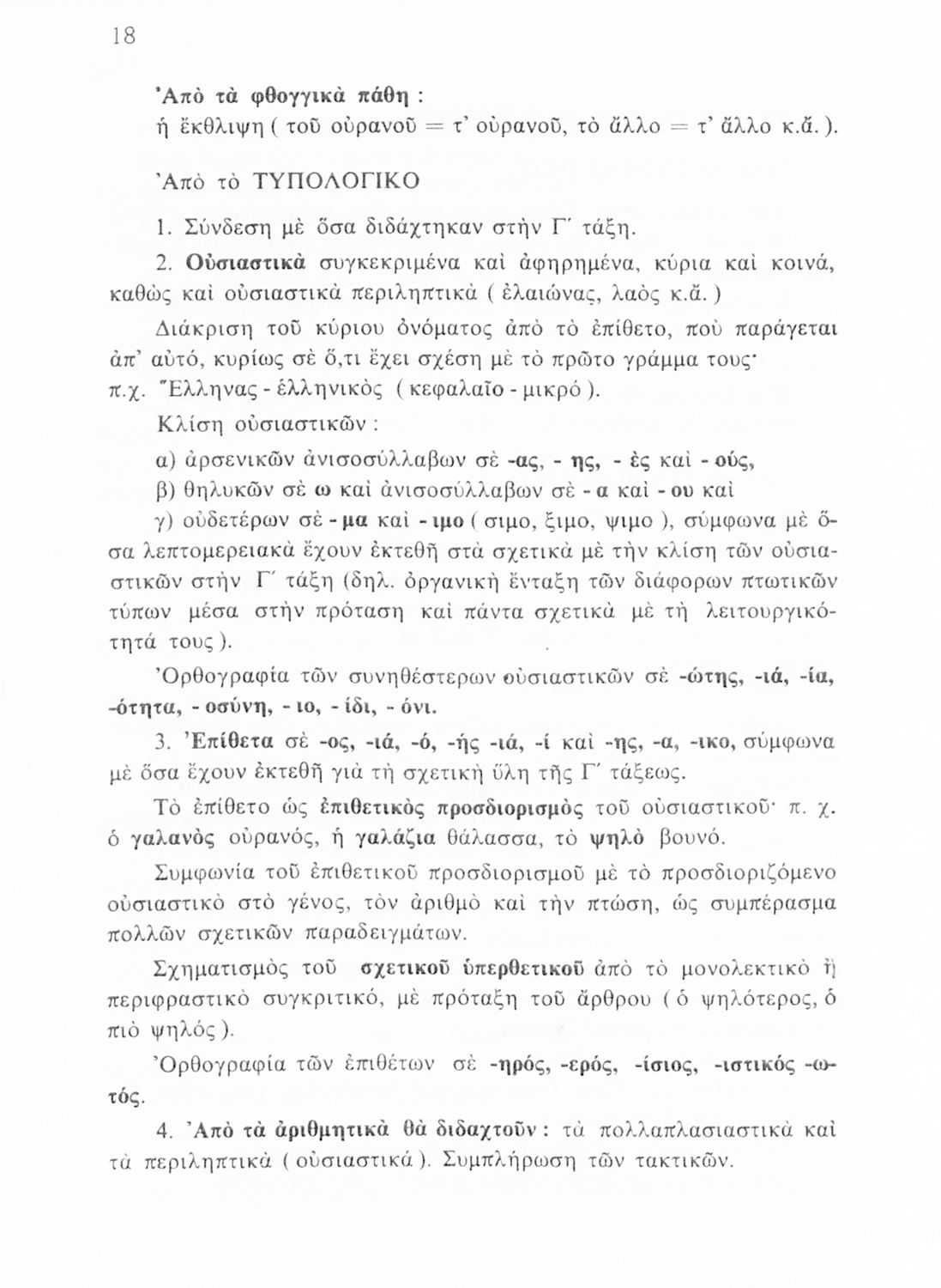 Παιδαγωγικό βοήθημα που περιλαμβάνει οδηγίες για τη διδασκαλία της γραμματικής στους μαθητές του Δημοτικού.