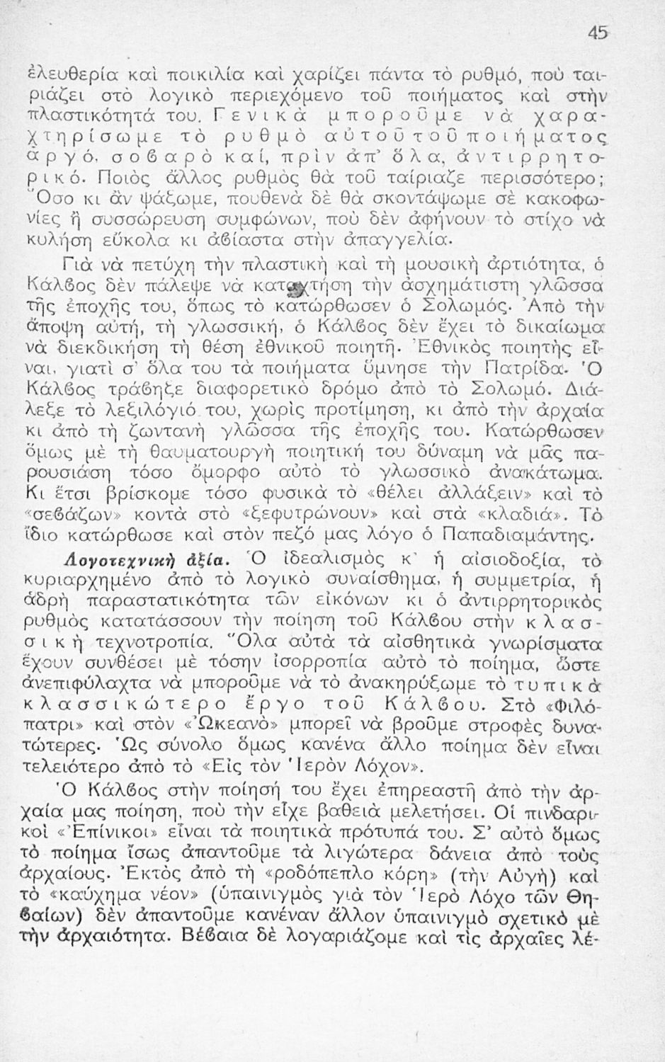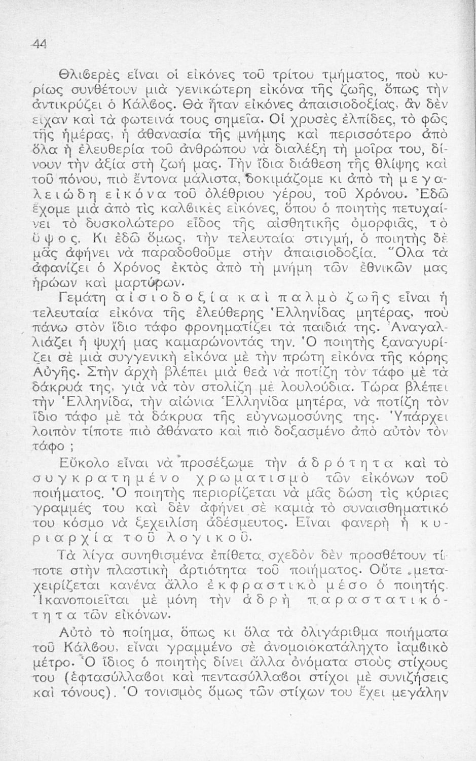 Παιδαγωγικό βοήθημα που περιλαμβάνει αναλύσεις των ποιημάτων του Κάλβου Ωδή στον Ιερόν Λόχον, Ο Φιλόπατρις, Τα Ηφαίστεια και Εις Δόξαν με σκοπό να αποκαταστήσει τη φήμη του ποιητή στους καθηγητές της ...