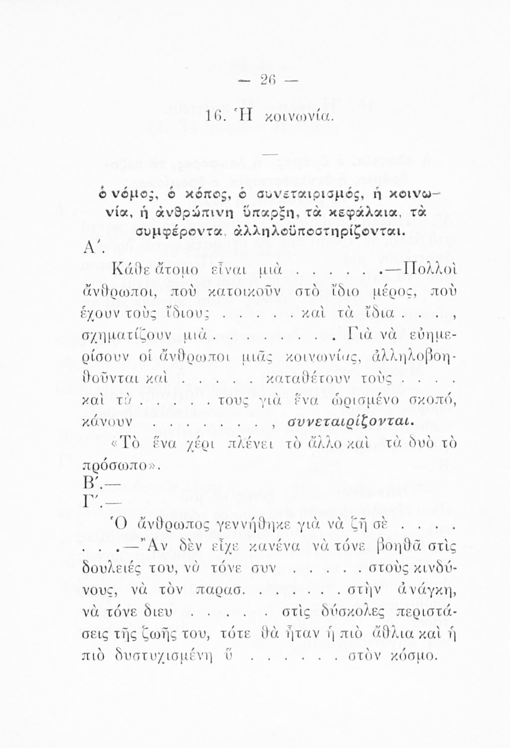 Κωδικός αναγνώρισης: 05-00027 Τίτλος: Λεκτικές και συνθετικές ασκήσεις σε τεύχη δύο. Τεύχος Β΄ με ολοσέλιδες εικόνες (Για τις μεσαίες τάξεις του Εξάχρονου Δημοτικού Σχολείου) Συγγραφέας: Ελπ. Μίχου Μέγεθος και υπόστρωμα: Παιδαγωγικό βοήθημα, σκληρό εξώφυλλο, 91 σελίδες. Σκίτσα (ασπρόμαυρα). |