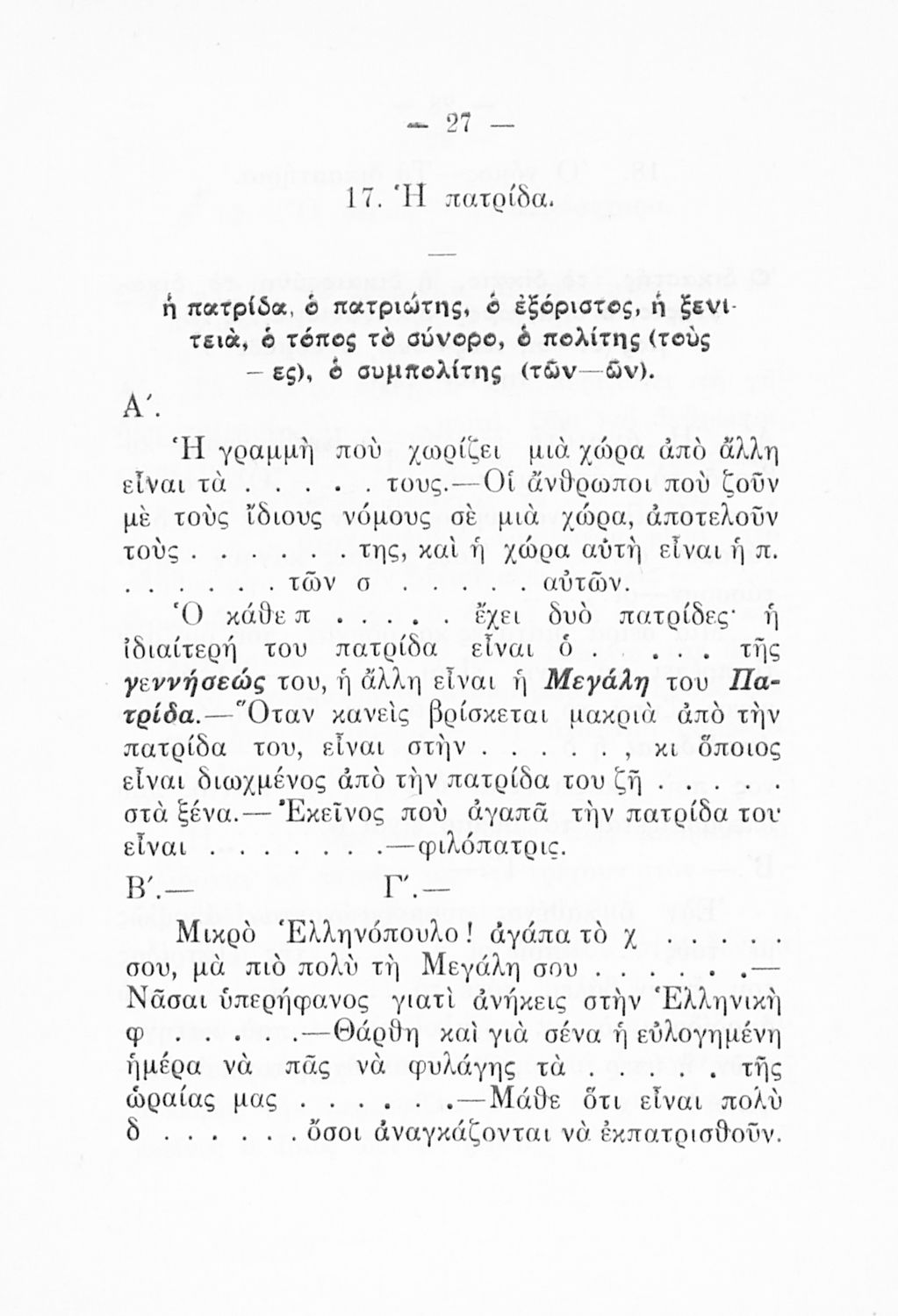 LDR 01178 2200205 4500 035 ## _a05-00027 040 ## _aΕργαστήρι Ιστορίας Ν.Ε. Εκπαίδευσης, Πανεπιστήμιο Ιωαννίνων 041 ## _ael 100 ## _aΕλπ. Μίχου 110 ## _a027 245 0# _aΛεκτικές και συνθετικές ασκήσεις σε τεύχη δύο. Τεύχος Β΄ με ολοσέλιδες εικόνες (Για τις μεσαίες τάξεις του Εξάχρονου Δημοτικού Σχολείου) 260 ## _aΑθήνα _bΕκδοτική Εταιρεία Αθήνα - Α. Ι. Ράλλης _c1928 300 ## _a91 _bΣκίτσα (ασπρόμαυρα) 520 ## _aΠαιδαγωγικό βοήθημα Γλώσσας Γ΄ και Δ΄ Δημοτικού που περιλαμβάνει λεκτικές και συνθετικές ασκήσεις. 521 ## _aΓ' Δημοτικού / Δ' Δημοτικού 522 ## _aΕλλάδα 546 ## _aΔημοτική 563 ## _aΣκληρό Εξώφυλλο 583 ## _c1928 650 #4 _aΑσκήσεις _aΗ πατρίδα _aΗ φύση _aΟικογένεια _aΤο σχολείο