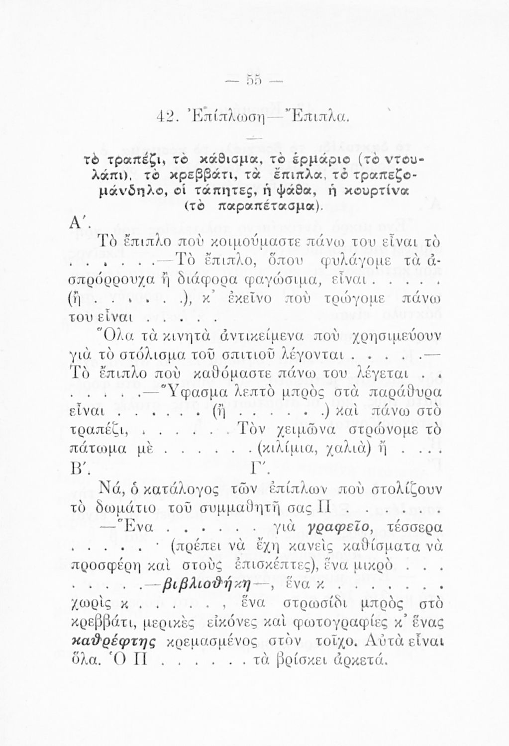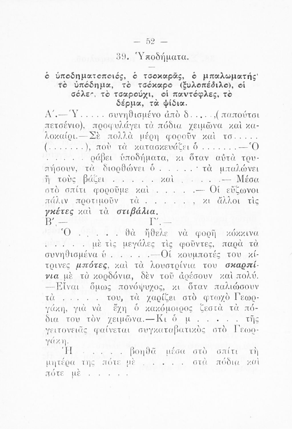 Κωδικός αναγνώρισης: 05-00027 Τίτλος: Λεκτικές και συνθετικές ασκήσεις σε τεύχη δύο. Τεύχος Β΄ με ολοσέλιδες εικόνες (Για τις μεσαίες τάξεις του Εξάχρονου Δημοτικού Σχολείου) Συγγραφέας: Ελπ. Μίχου Μέγεθος και υπόστρωμα: Παιδαγωγικό βοήθημα, σκληρό εξώφυλλο, 91 σελίδες. Σκίτσα (ασπρόμαυρα). |