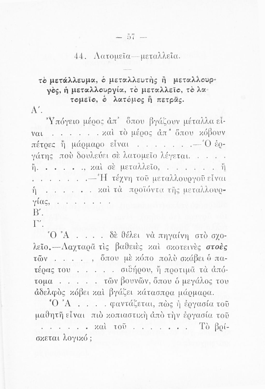 LDR 01178 2200205 4500 035 ## _a05-00027 040 ## _aΕργαστήρι Ιστορίας Ν.Ε. Εκπαίδευσης, Πανεπιστήμιο Ιωαννίνων 041 ## _ael 100 ## _aΕλπ. Μίχου 110 ## _a027 245 0# _aΛεκτικές και συνθετικές ασκήσεις σε τεύχη δύο. Τεύχος Β΄ με ολοσέλιδες εικόνες (Για τις μεσαίες τάξεις του Εξάχρονου Δημοτικού Σχολείου) 260 ## _aΑθήνα _bΕκδοτική Εταιρεία Αθήνα - Α. Ι. Ράλλης _c1928 300 ## _a91 _bΣκίτσα (ασπρόμαυρα) 520 ## _aΠαιδαγωγικό βοήθημα Γλώσσας Γ΄ και Δ΄ Δημοτικού που περιλαμβάνει λεκτικές και συνθετικές ασκήσεις. 521 ## _aΓ' Δημοτικού / Δ' Δημοτικού 522 ## _aΕλλάδα 546 ## _aΔημοτική 563 ## _aΣκληρό Εξώφυλλο 583 ## _c1928 650 #4 _aΑσκήσεις _aΗ πατρίδα _aΗ φύση _aΟικογένεια _aΤο σχολείο