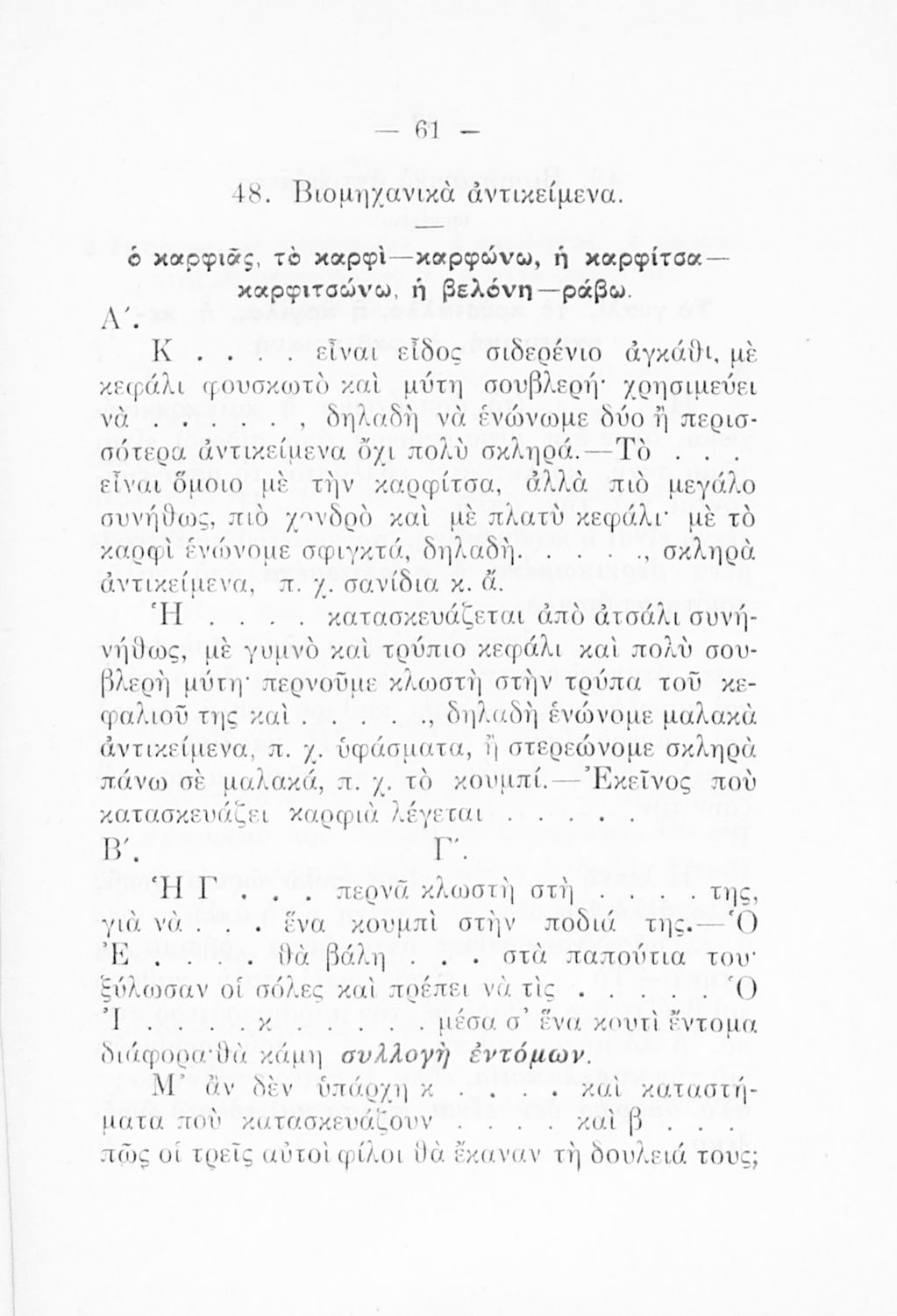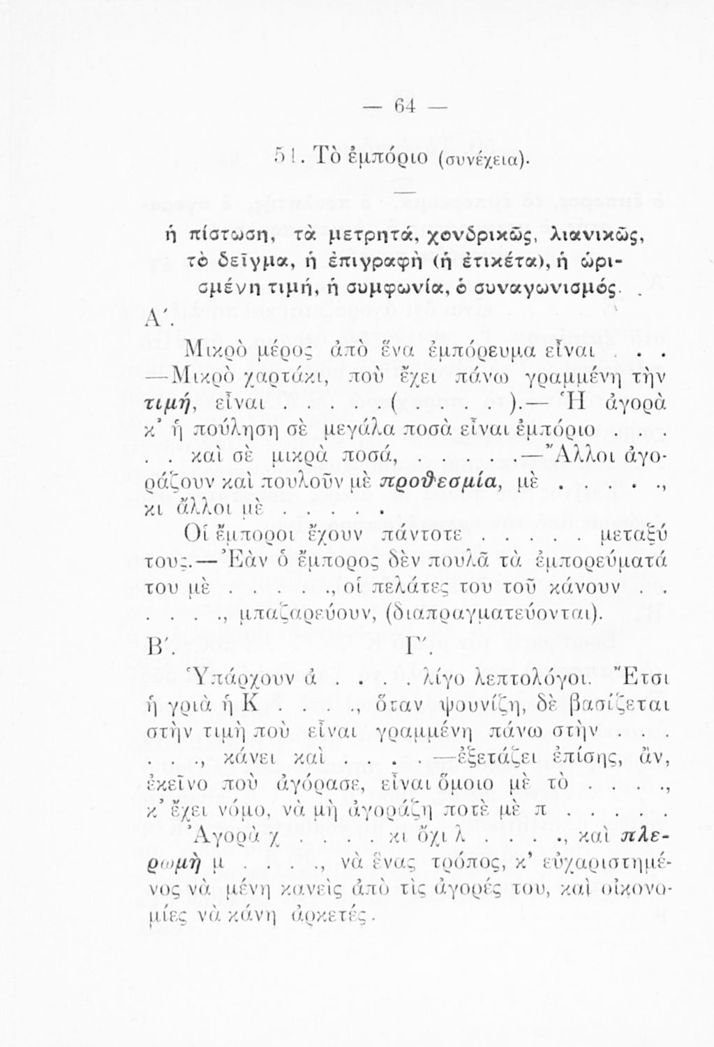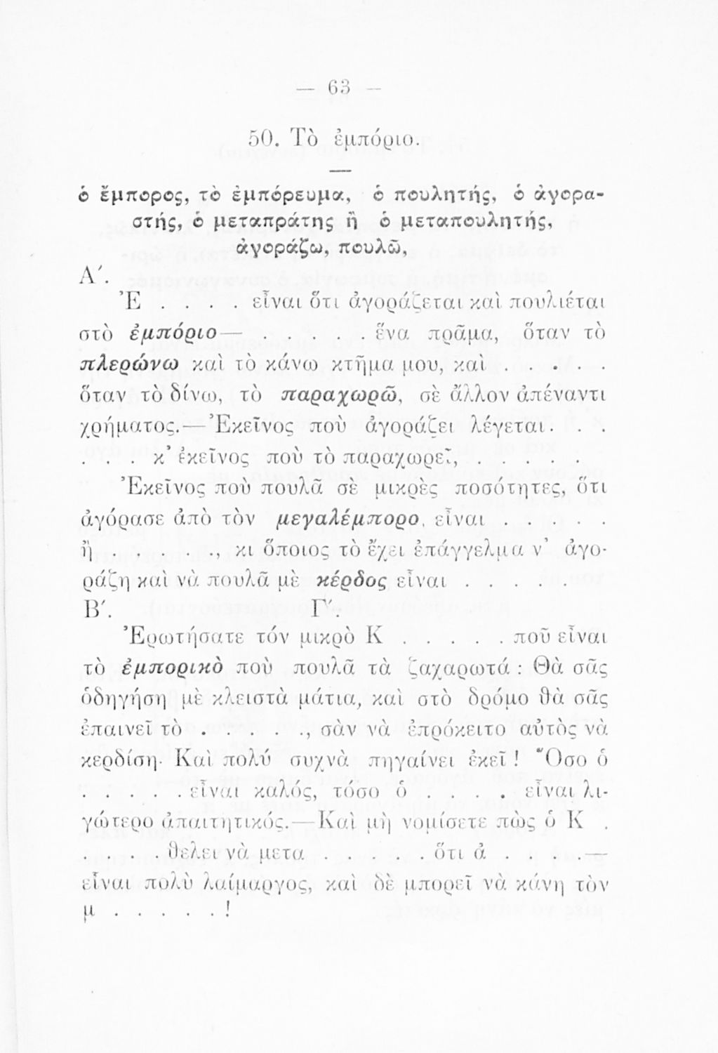 Κωδικός αναγνώρισης: 05-00027 Τίτλος: Λεκτικές και συνθετικές ασκήσεις σε τεύχη δύο. Τεύχος Β΄ με ολοσέλιδες εικόνες (Για τις μεσαίες τάξεις του Εξάχρονου Δημοτικού Σχολείου) Συγγραφέας: Ελπ. Μίχου Μέγεθος και υπόστρωμα: Παιδαγωγικό βοήθημα, σκληρό εξώφυλλο, 91 σελίδες. Σκίτσα (ασπρόμαυρα). |
