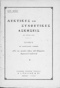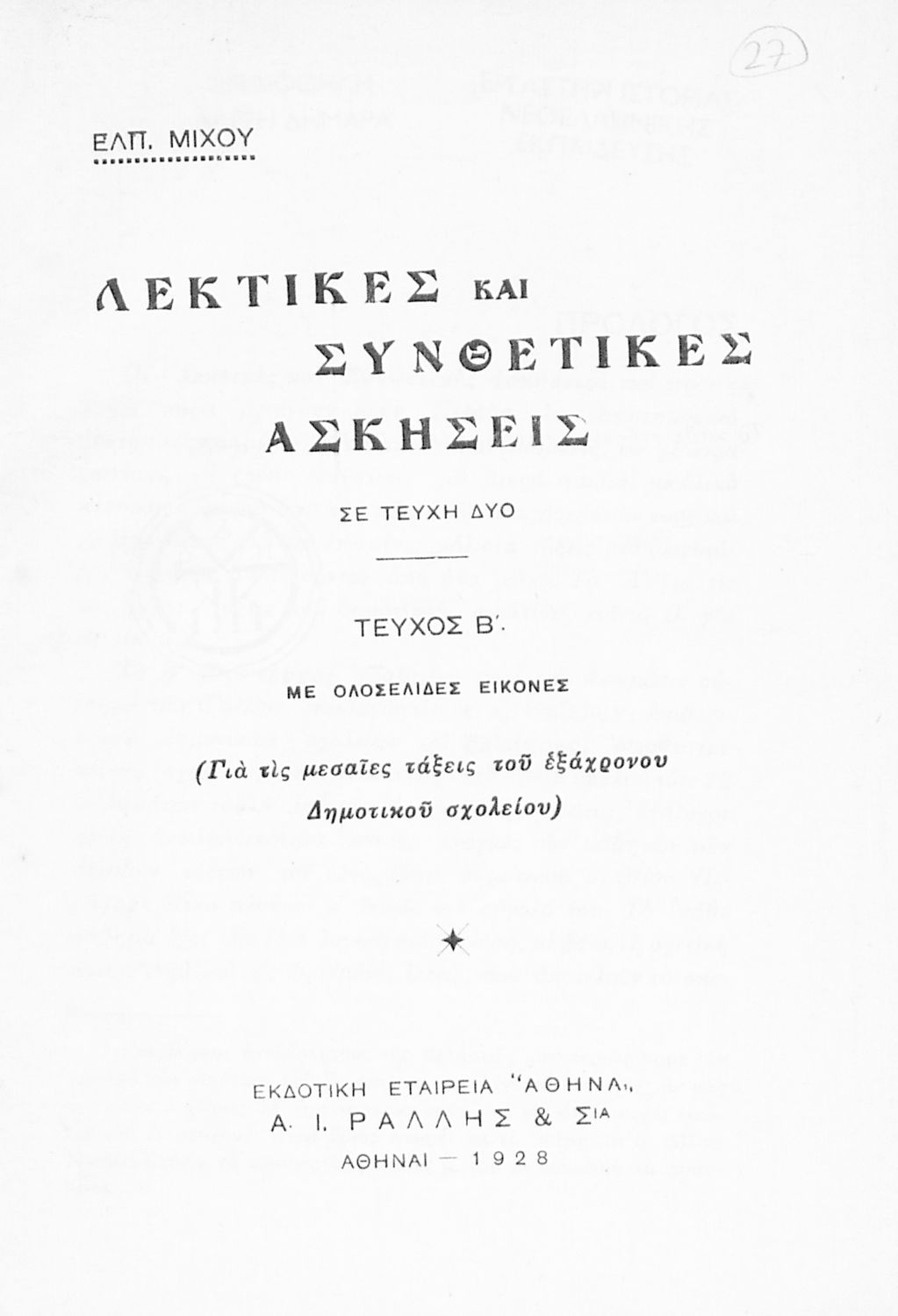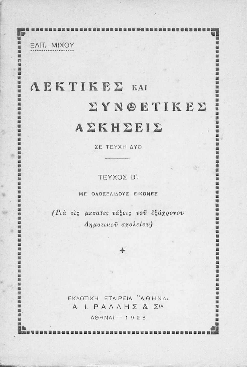 Τίτλος: Λεκτικές και συνθετικές ασκήσεις σε τεύχη δύο. Τεύχος Β΄ με ολοσέλιδες εικόνες (Για τις μεσαίες τάξεις του Εξάχρονου Δημοτικού Σχολείου)