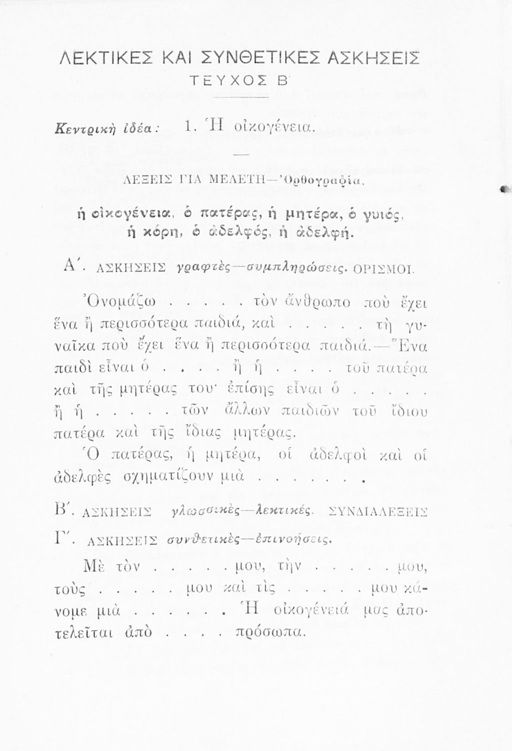 Λεκτικές και συνθετικές ασκήσεις σε τεύχη δύο. Τεύχος Β΄ με ολοσέλιδες εικόνες (Για τις μεσαίες τάξεις του Εξάχρονου Δημοτικού Σχολείου)