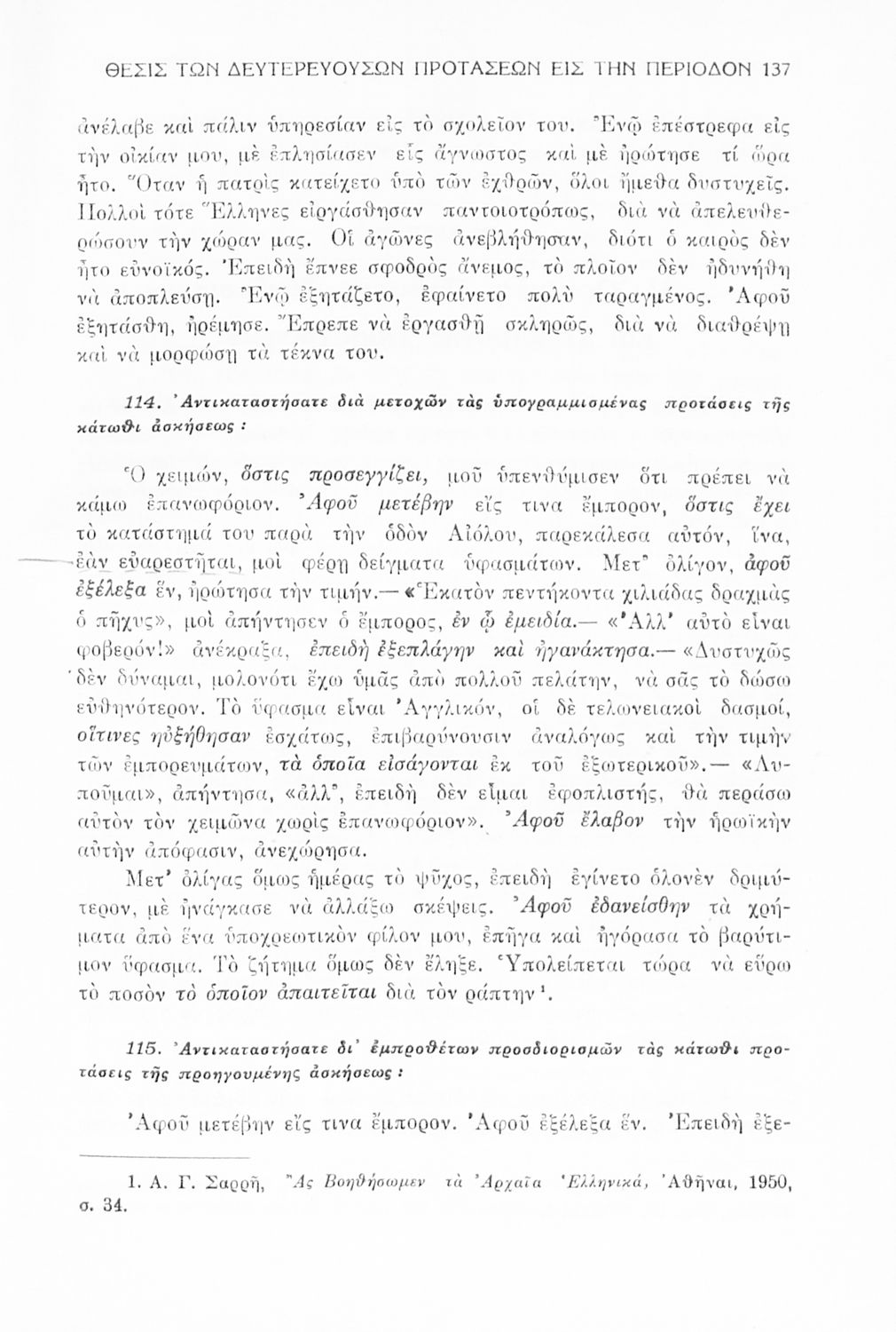 Τάξη:  Α' Γυμνάσιου / Β' Γυμνάσιου / Ανώτερα Παρθεναγωγεία / Α' Διδασκαλείου