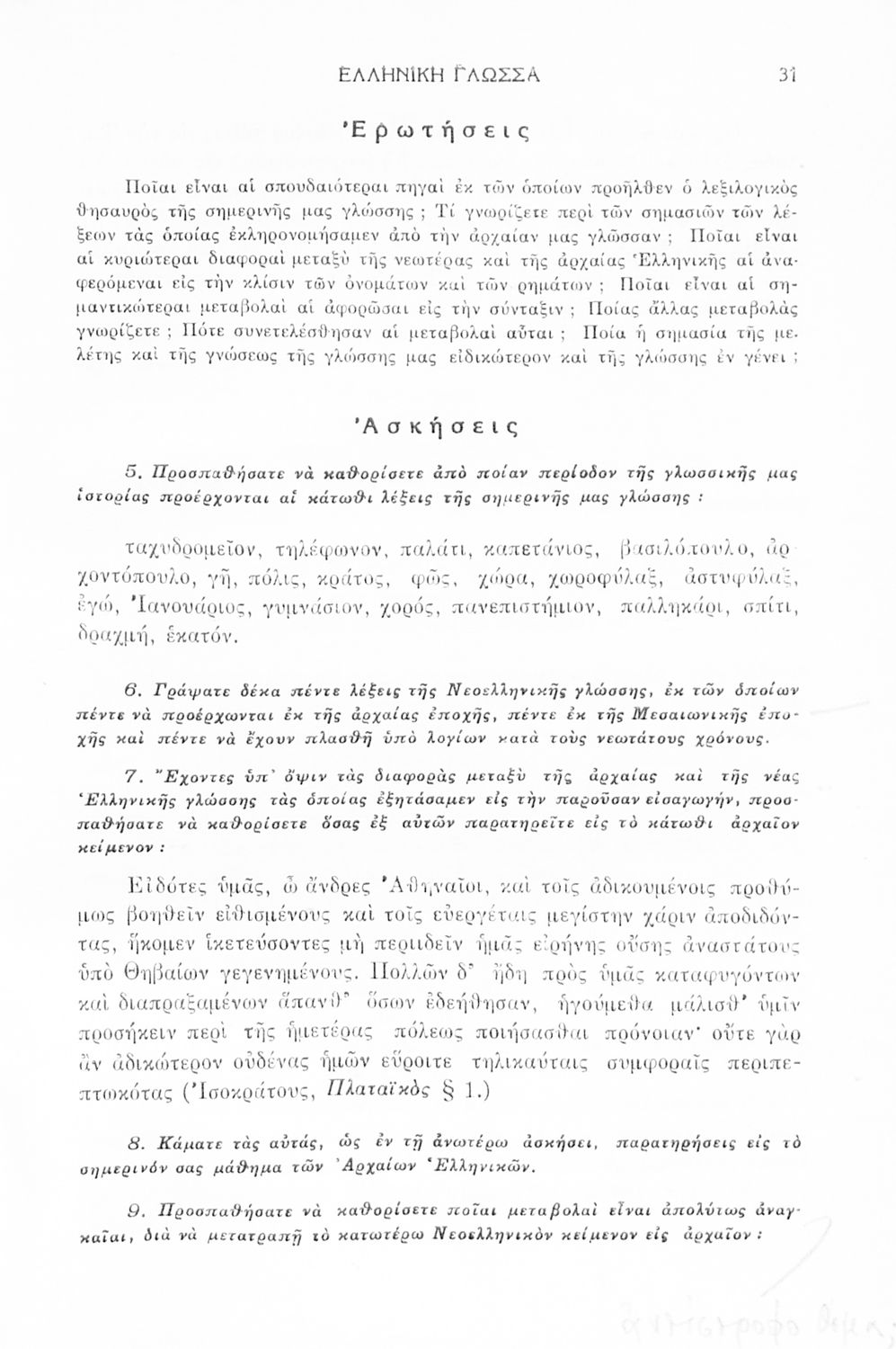 Τάξη:  Α' Γυμνάσιου / Β' Γυμνάσιου / Ανώτερα Παρθεναγωγεία / Α' Διδασκαλείου