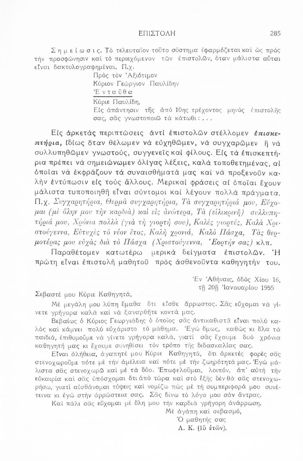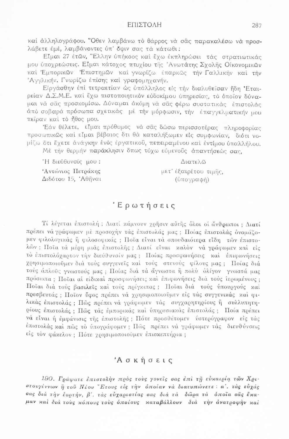 Τάξη:  Α' Γυμνάσιου / Β' Γυμνάσιου / Ανώτερα Παρθεναγωγεία / Α' Διδασκαλείου