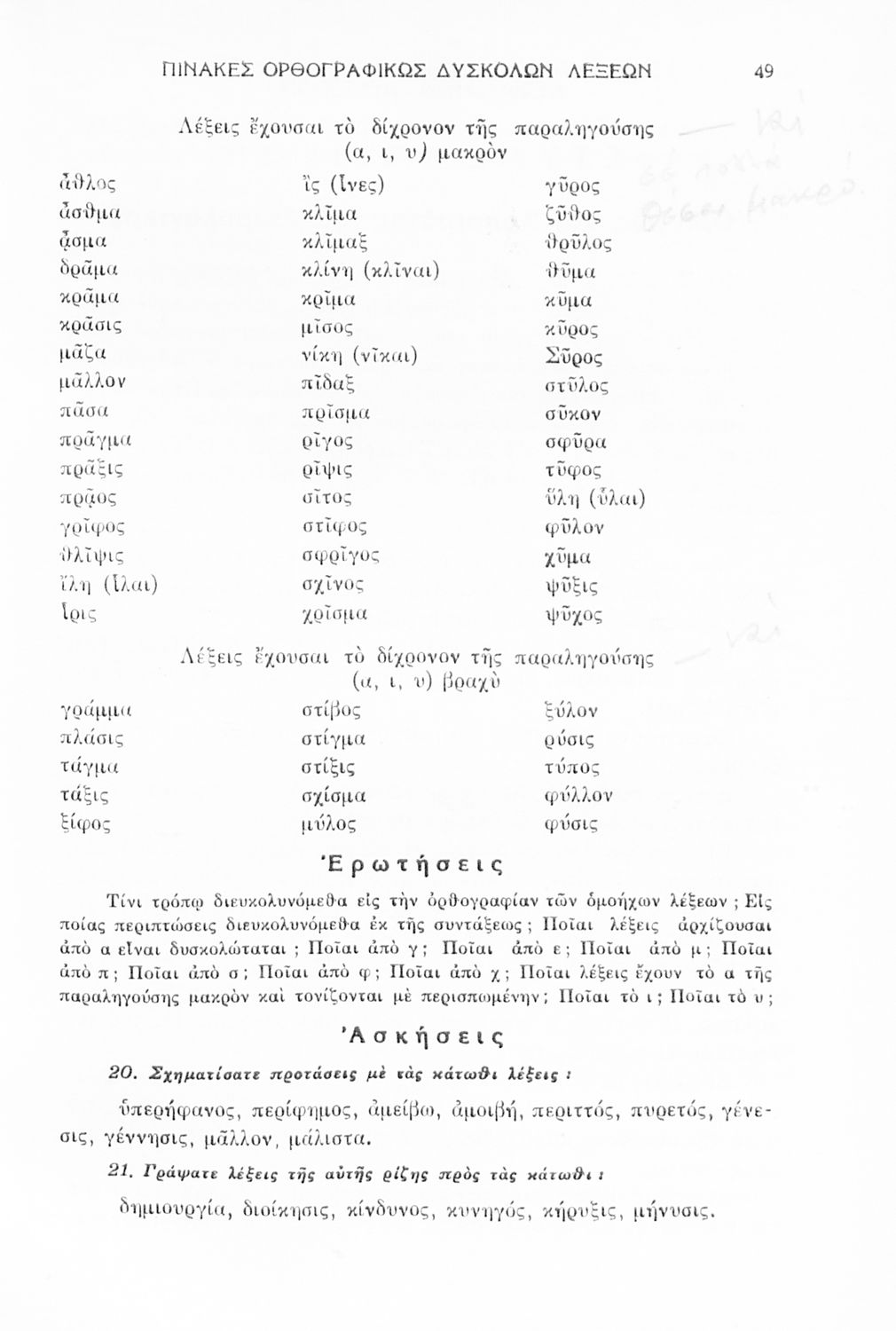 Μαθητικό βοήθημα που περιλαμβάνει τους βασικούς κανόνες γραμματικής (φθογγολογικό και τυπολογικό μέρος) της νέας ελληνικής αλλά και επιγραμματικά της αρχαίας ελληνικής.