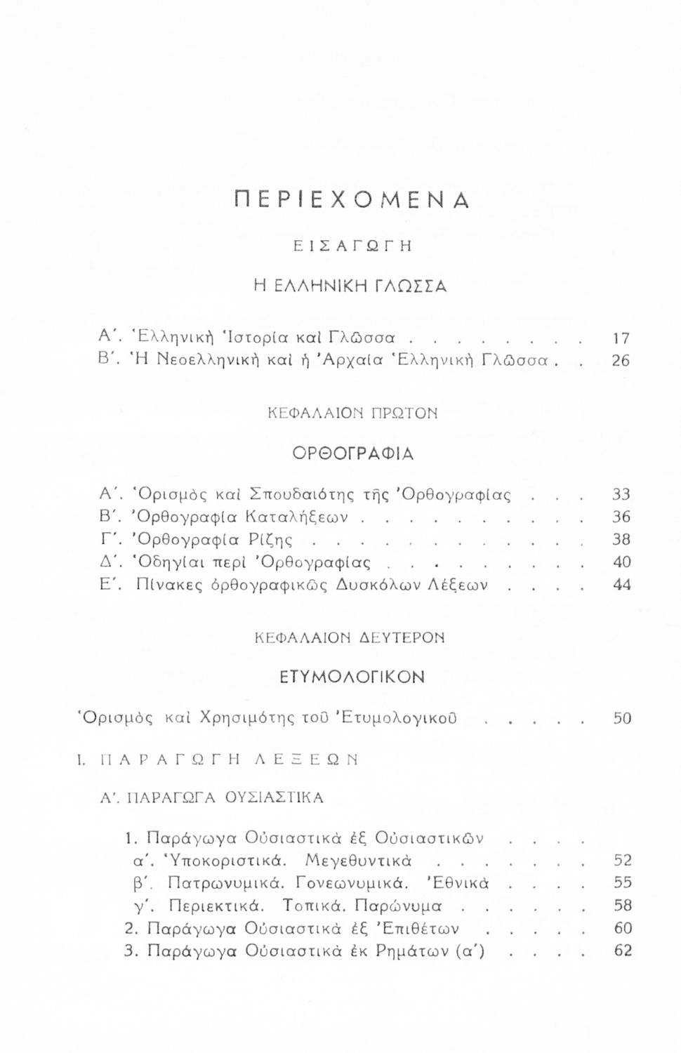 Μαθητικό βοήθημα που περιλαμβάνει τους βασικούς κανόνες γραμματικής (φθογγολογικό και τυπολογικό μέρος) της νέας ελληνικής αλλά και επιγραμματικά της αρχαίας ελληνικής.