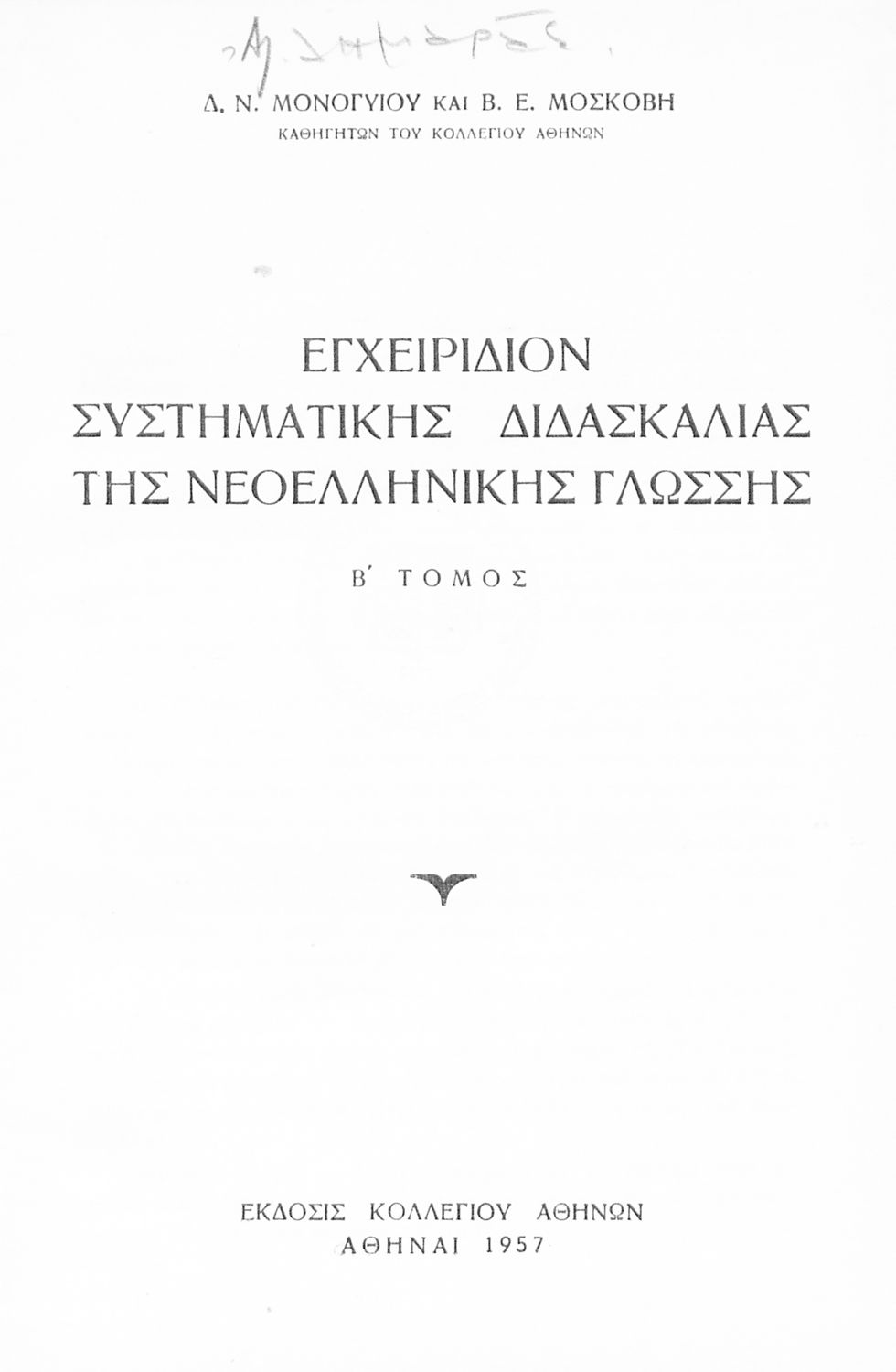 Τίτλος: Εγχειρίδιον συστηματικής διδασκαλίας της νεοελληνικής γλώσσης, Β΄ τόμος