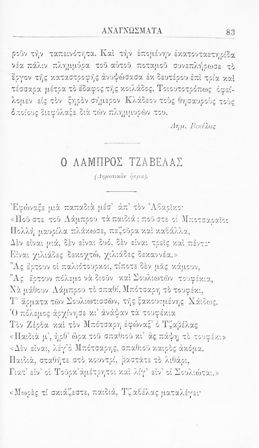 LDR 01509 2200217 4500 035 ## _a05-00029 040 ## _aΕργαστήρι Ιστορίας Ν.Ε. Εκπαίδευσης, Πανεπιστήμιο Ιωαννίνων 041 ## _ael 100 ## _aΔημήτριος Κακλαμάνος 110 ## _a029 245 0# _aΝεοελληνικά αναγνώσματα προς χρήσιν των μαθητών της Γ΄ τάξεως των Ελληνικών Σχολείων. Εγκριθέντα εν τω κατά τον νόμον ΓΣΑ΄ διαγωνισμώ διά την τετραετίαν 1909-1913 250 ## _a1η Έκδοση 260 ## _aΑθήνα _bΔ.Χ. Τερζόπουλος _c1910 300 ## _a96 _bΣκίτσα (ασπρόμαυρα) 520 ## _aΣχολικό εγχειρίδιο Νέων Ελληνικών για τη Γ' Ελληνικού Σχολείου που περιλαμβάνει κείμενα και εξιστορήσεις γεγονότων που αφορούν την άλωση της Κωνσταντινούπολης από τους Άραβες και την Ελληνική Επανάσταση του 1821. 521 ## _aΓ' Ελληνικού Σχολείου 522 ## _aΕλλάδα 546 ## _aΚαθαρεύουσα 563 ## _aΣκληρό Εξώφυλλο 583 ## _c1909 650 #4 _aΑκάθιστος Ύμνος _aΔημοτικά τραγούδια _aΕλληνική Επανάσταση _aΉρωες του 1821 _aΝέα Ελληνικά