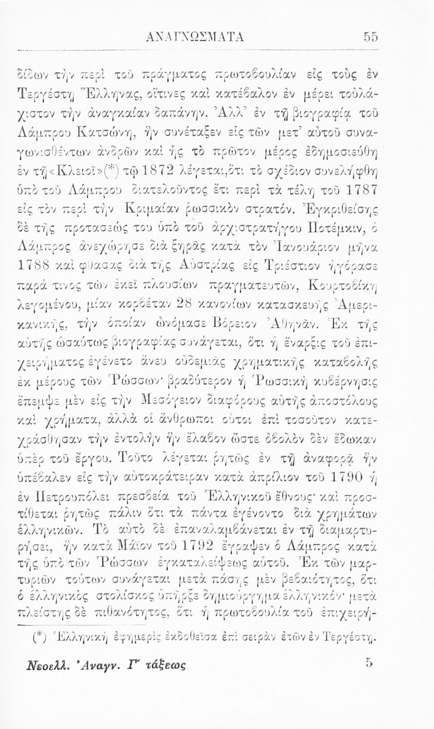 Νεοελληνικά αναγνώσματα προς χρήσιν των μαθητών της Γ΄ τάξεως των Ελληνικών Σχολείων. Εγκριθέντα εν τω κατά τον νόμον ΓΣΑ΄ διαγωνισμώ διά την τετραετίαν 1909-1913