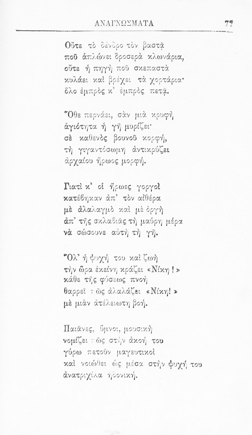 Σχολικό εγχειρίδιο Νέων Ελληνικών για την Α' Ελληνικού Σχολείου που περιλαμβάνει ποιήματα και πεζά εμπνευσμένα από την αρχαία, βυζαντινή και νεώτερη ιστορία της Ελλάδας, τη θρησκευτική παράδοση και τα τοπικά ...
