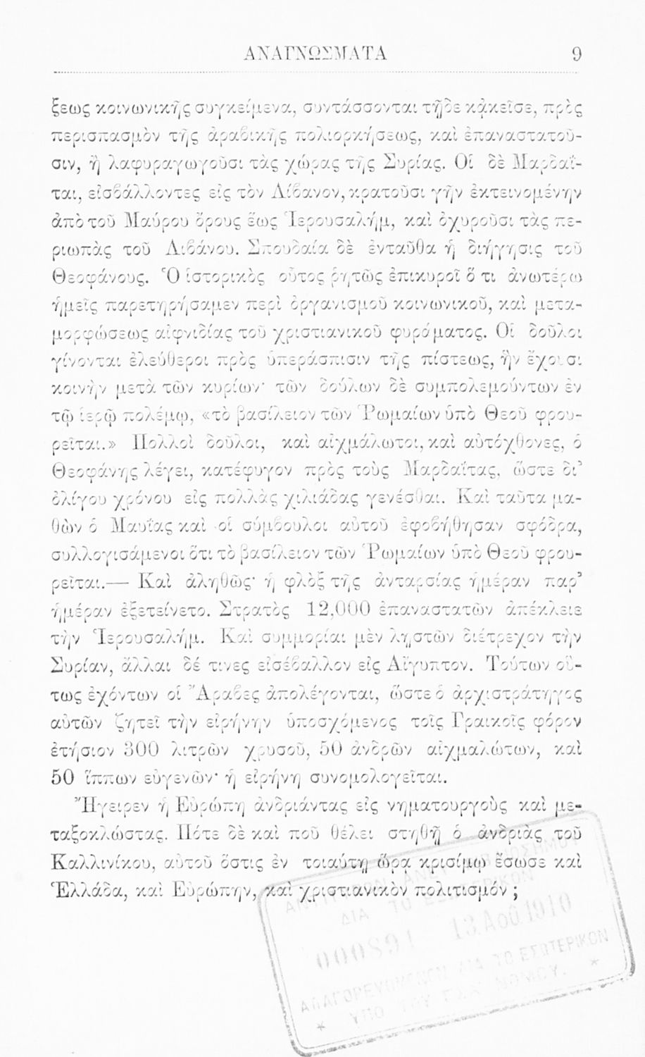 LDR 01509 2200217 4500 035 ## _a05-00029 040 ## _aΕργαστήρι Ιστορίας Ν.Ε. Εκπαίδευσης, Πανεπιστήμιο Ιωαννίνων 041 ## _ael 100 ## _aΔημήτριος Κακλαμάνος 110 ## _a029 245 0# _aΝεοελληνικά αναγνώσματα προς χρήσιν των μαθητών της Γ΄ τάξεως των Ελληνικών Σχολείων. Εγκριθέντα εν τω κατά τον νόμον ΓΣΑ΄ διαγωνισμώ διά την τετραετίαν 1909-1913 250 ## _a1η Έκδοση 260 ## _aΑθήνα _bΔ.Χ. Τερζόπουλος _c1910 300 ## _a96 _bΣκίτσα (ασπρόμαυρα) 520 ## _aΣχολικό εγχειρίδιο Νέων Ελληνικών για τη Γ' Ελληνικού Σχολείου που περιλαμβάνει κείμενα και εξιστορήσεις γεγονότων που αφορούν την άλωση της Κωνσταντινούπολης από τους Άραβες και την Ελληνική Επανάσταση του 1821. 521 ## _aΓ' Ελληνικού Σχολείου 522 ## _aΕλλάδα 546 ## _aΚαθαρεύουσα 563 ## _aΣκληρό Εξώφυλλο 583 ## _c1909 650 #4 _aΑκάθιστος Ύμνος _aΔημοτικά τραγούδια _aΕλληνική Επανάσταση _aΉρωες του 1821 _aΝέα Ελληνικά