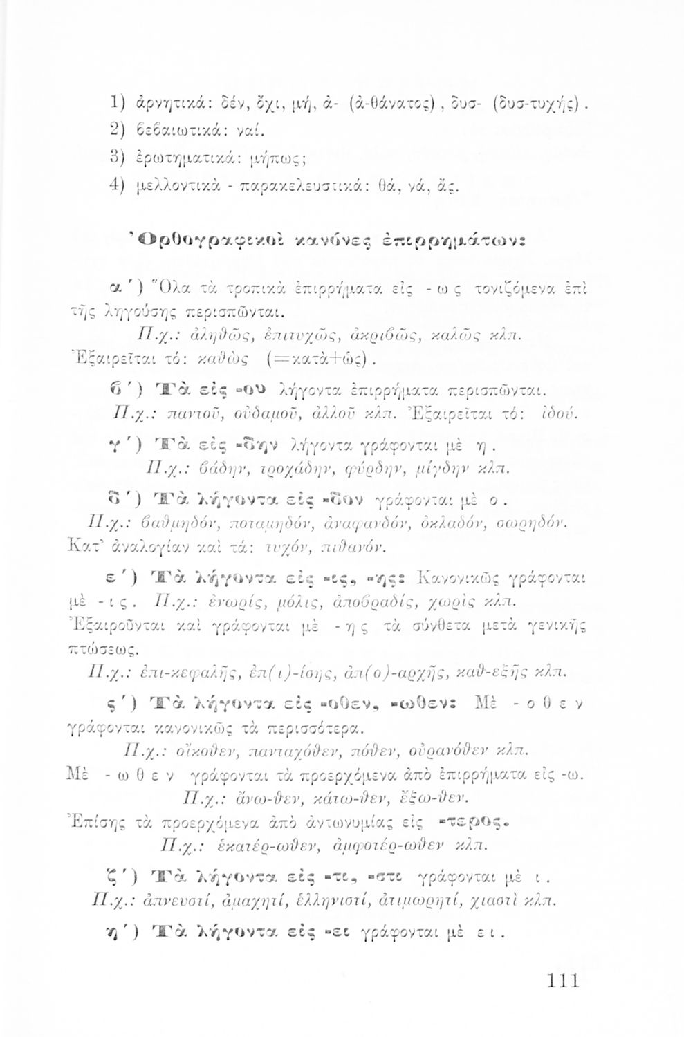 Μαθητικό βοήθημα Νέων Ελληνικών Γυμνασίου που περιλαμβάνει τους κανόνες της γραμματικής και του συντακτικού της καθαρεύουσας.