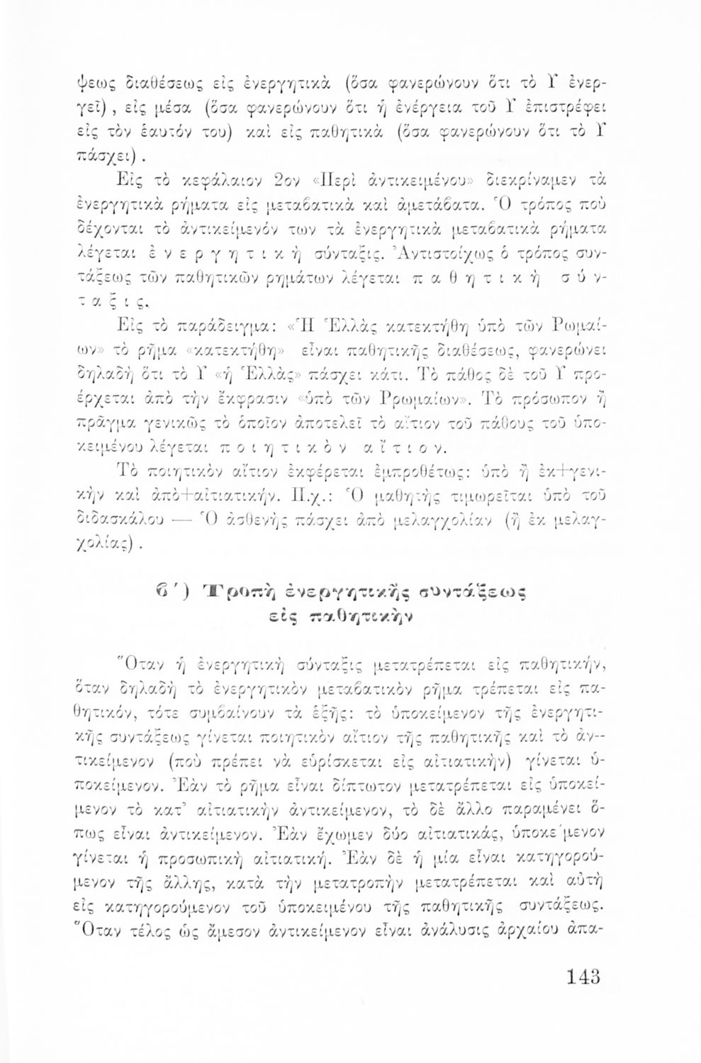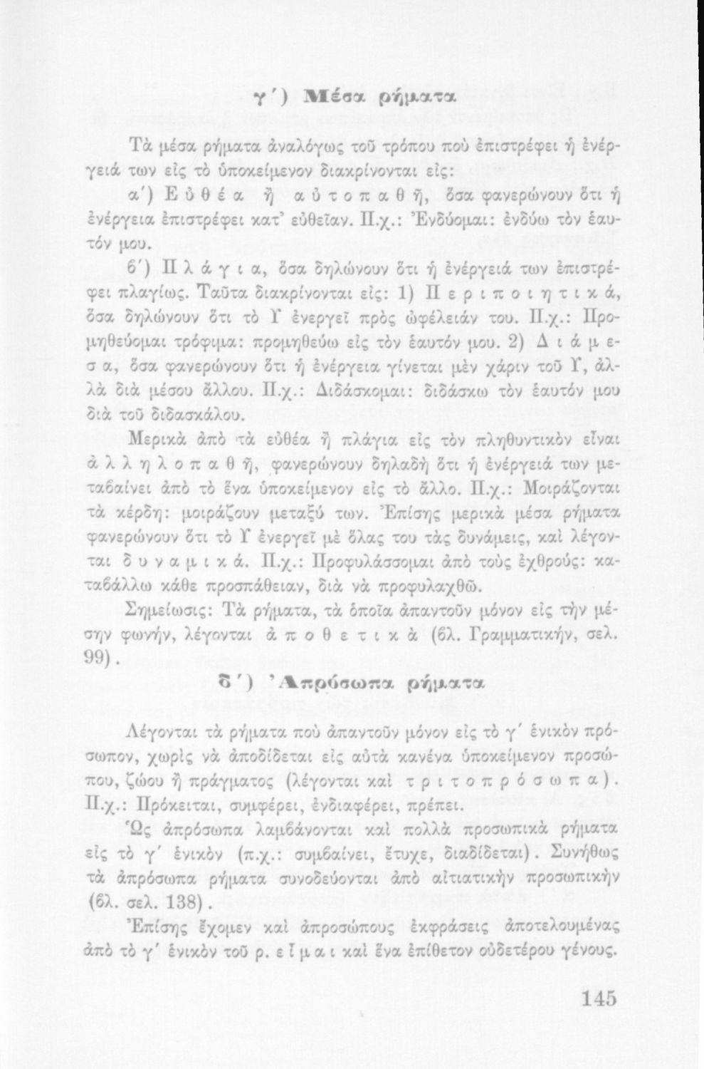 Σχολικό εγχειρίδιο γραμματικής για τους μαθητές της Ε΄ και ΣΤ΄ τάξης του Δημοτικού. Περιέχει τη διδασκαλία της γραμματικής της καθαρεύουσας με κανόνες και παραδείγματα.