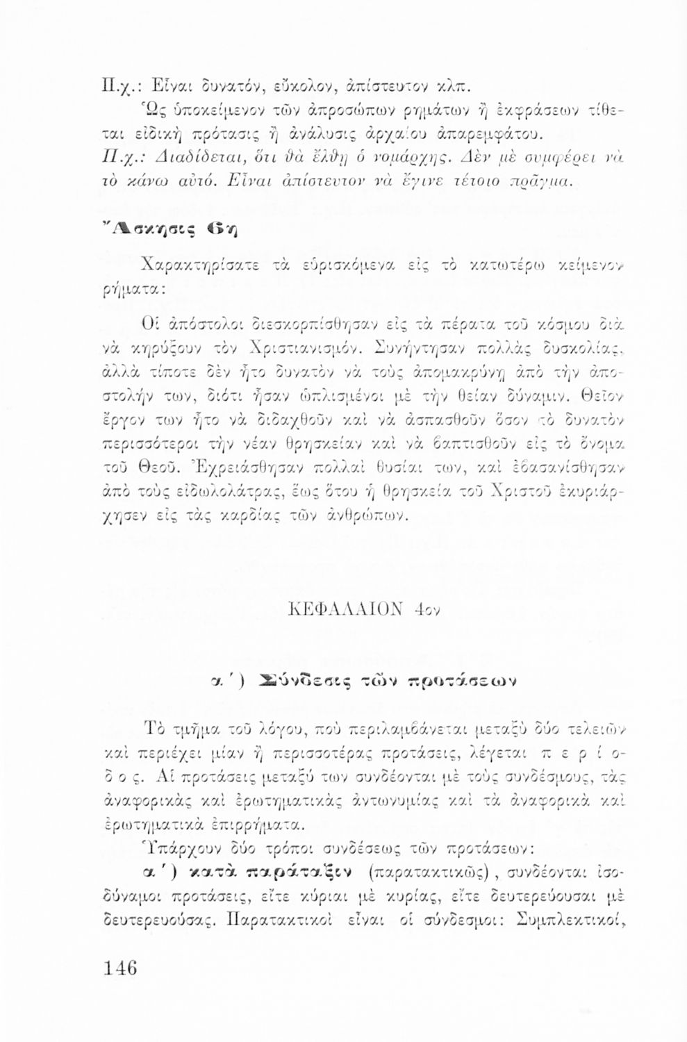 Τάξη:  Α' Ελληνικού Σχολείου / Β' Ελληνικού Σχολείου / Γ' Ελληνικού Σχολείου / Παρθεναγωγείο