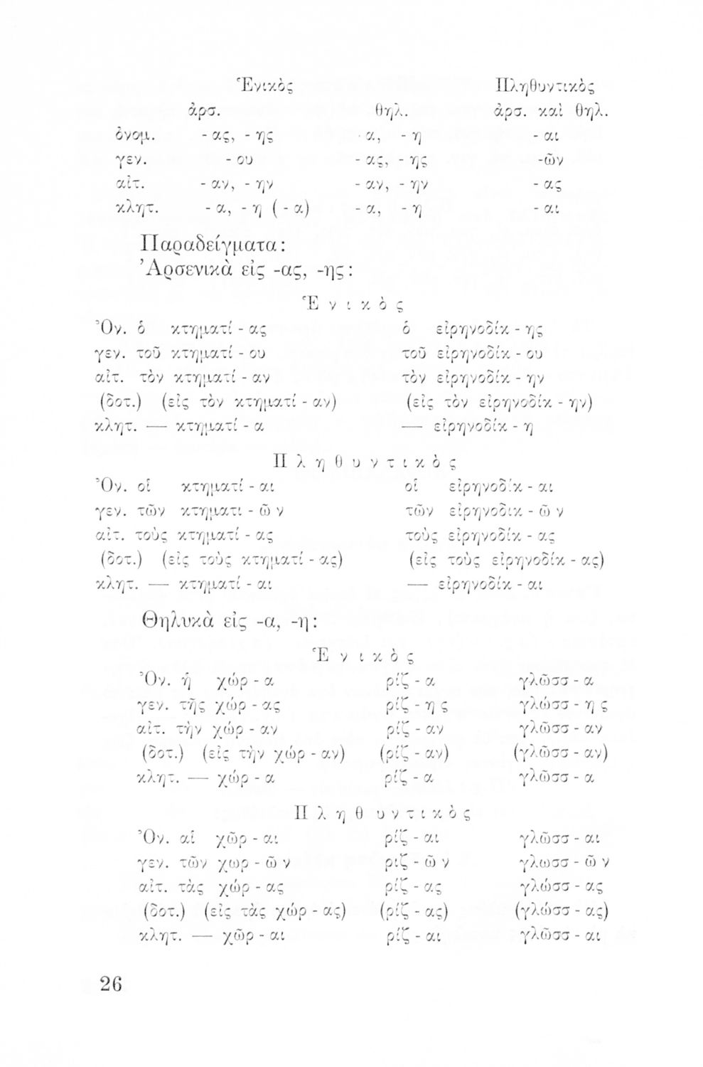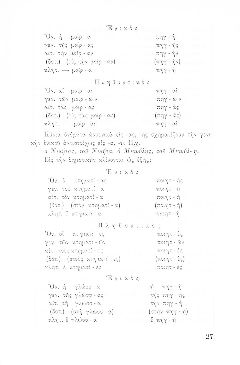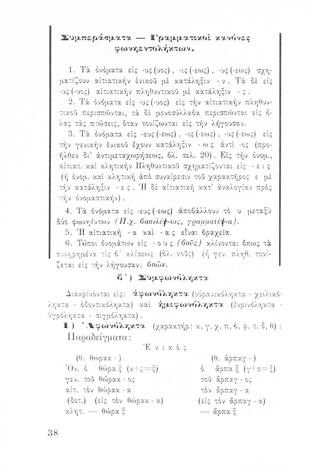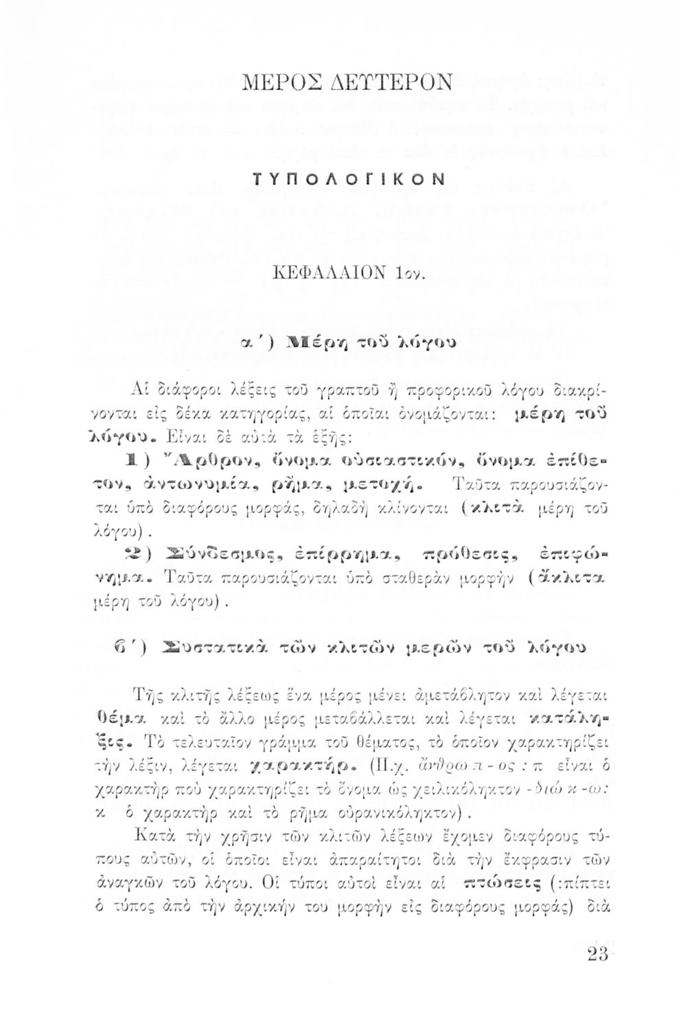 Μαθητικό βοήθημα Γραμματικής για τους μαθητές της Ε΄ και ΣΤ΄ τάξης του Δημοτικού. Περιέχει τη διδασκαλία της γραμματικής της καθαρεύουσας.