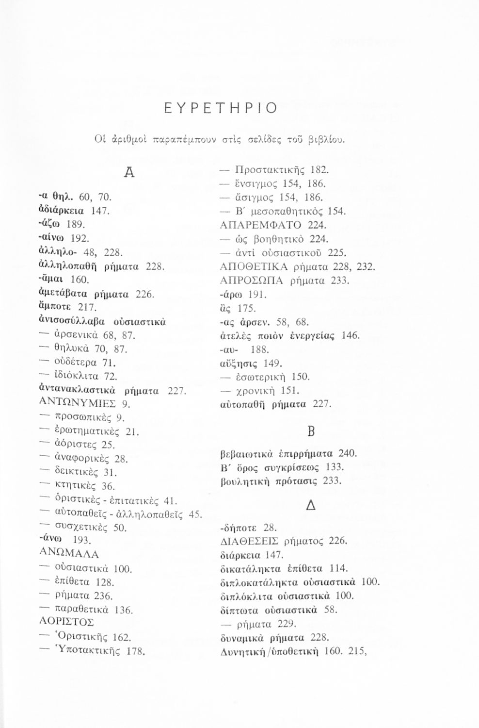 LDR 00954 2200181 4500 035 ## _a05-00033 040 ## _aΕργαστήρι Ιστορίας Ν.Ε. Εκπαίδευσης, Πανεπιστήμιο Ιωαννίνων 041 ## _ael 100 ## _aΓεωργ. Μπαμπινιώτης _aΠαναγ. Κοντός 110 ## _a033 245 0# _aΣύγχρονη γραμματική της κοινής νέας ελληνικής. Θεωρία - ασκήσεις 260 ## _aΑθήνα _c1967 300 ## _a262 520 ## _aΜαθητικό βοήθημα που περιλαμβάνει τους κανόνες της νεοελληνικής γραμματικής. 522 ## _aΕλλάδα 546 ## _aΔημοτική με στοιχεία καθαρεύουσας 563 ## _aΜαλακό Εξώφυλλο 650 #4 _aΑντωνυμίες _aΕπίθετα _aΝέα ελληνική γραμματική _aΟυσιαστικά _aΠροθέσεις _aΡήματα