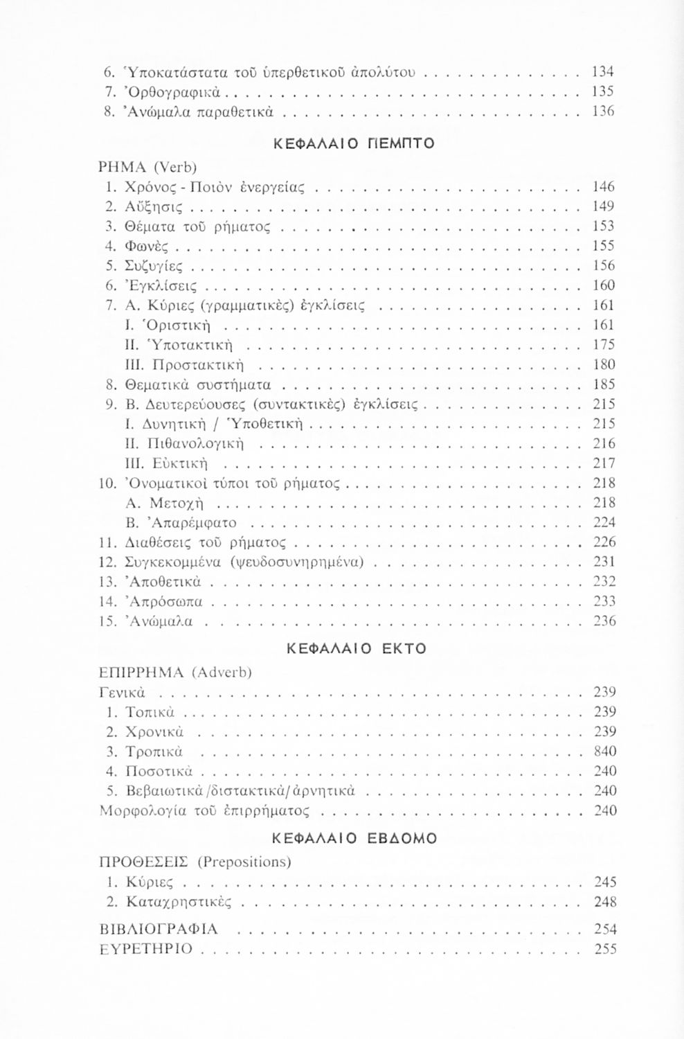 Βαθμίδα εκπαίδευσης: Πρωτοβάθμια, Δευτεροβάθμια Μάθημα: Νέα Ελληνικά Γλώσσα: Δημοτική με στοιχεία καθαρεύουσας Παρουσίαση περιεχομένου: Μαθητικό βοήθημα που περιλαμβάνει τους κανόνες της νεοελληνικής γραμματικής. |