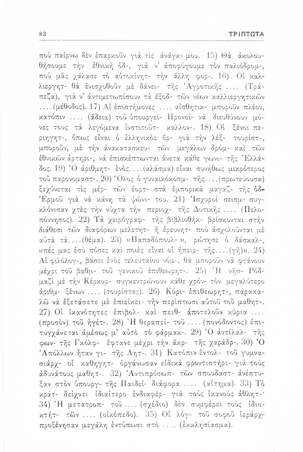 Τάξη:  Τετρατάξιο Γυμνάσιο / Γ' Αστικού Σχολείου Θηλέων / Διδασκαλεία Δημοτικής Εκπαίδευσης