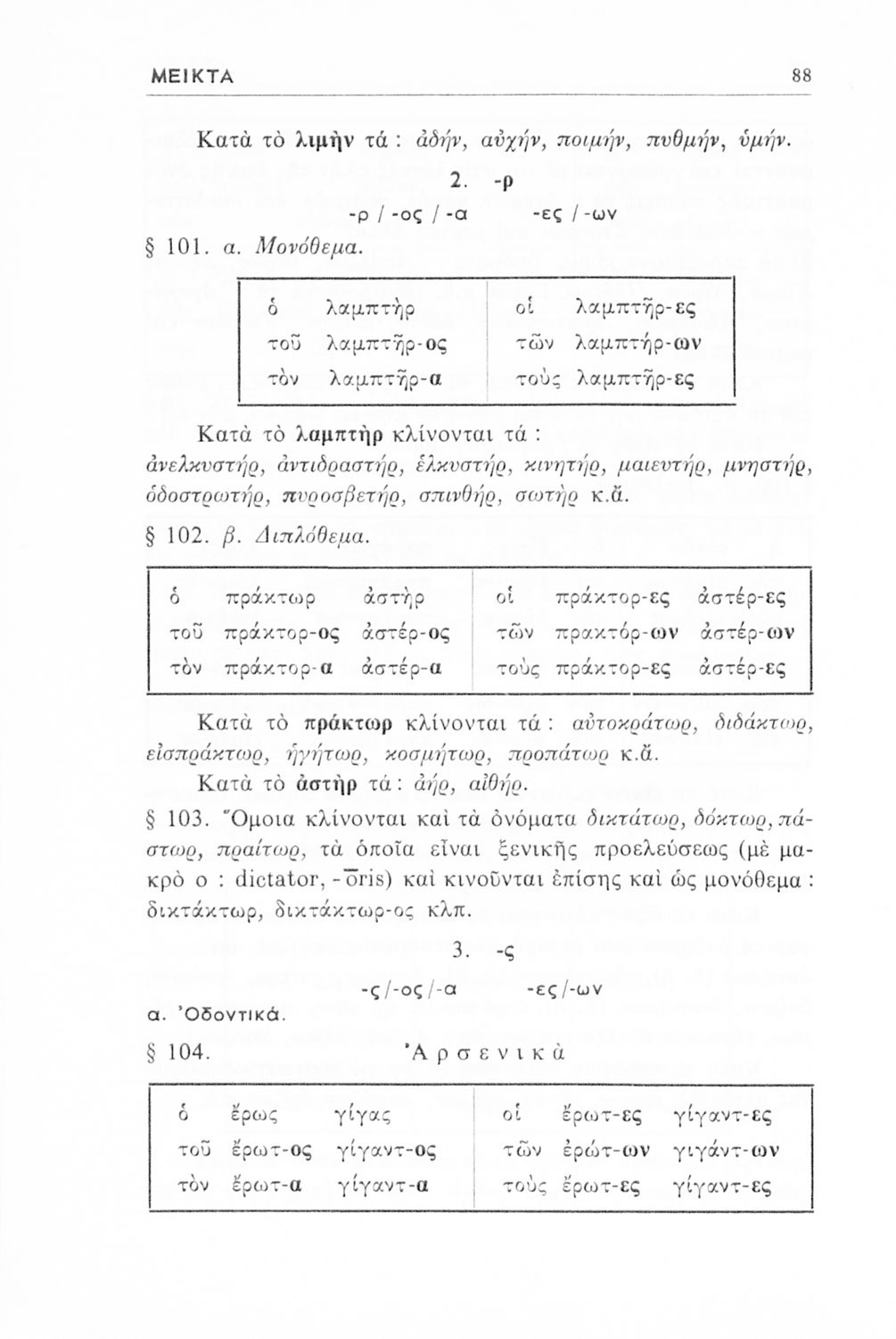 Σχολικό εγχειρίδιο Γ΄ και Δ΄ Δημοτικού που περιέχει τη γραμματικής της νέας ελληνικής. Την έκδοση επιμελήθηκε ο Γ. Λογοθέτης, τέως διευθυντής του επταταξίου δημ. Τμήμ.της Ευαγγελικής Σχολής.