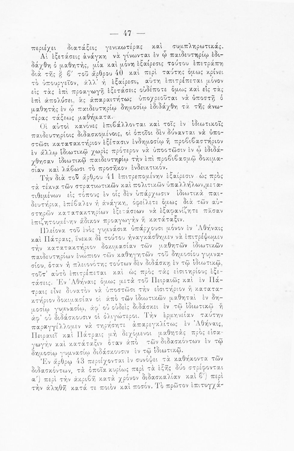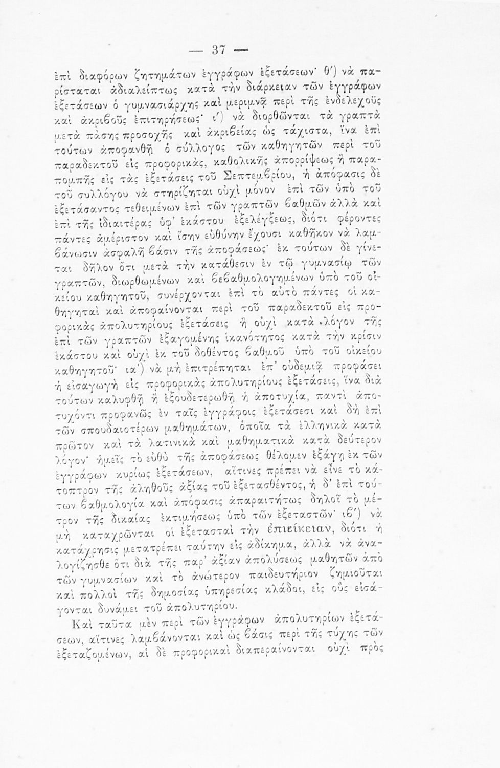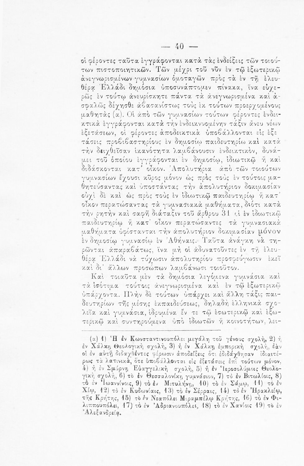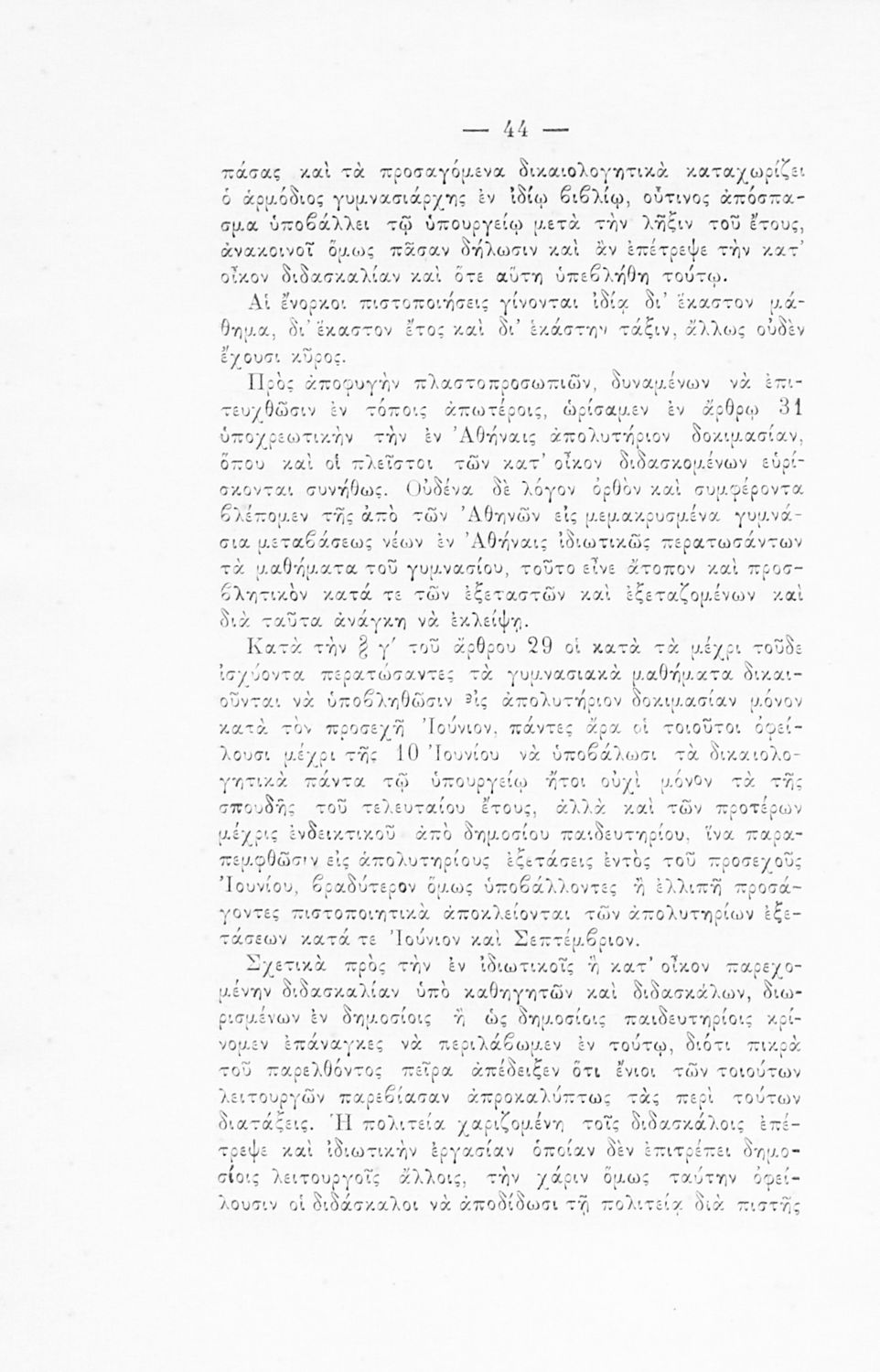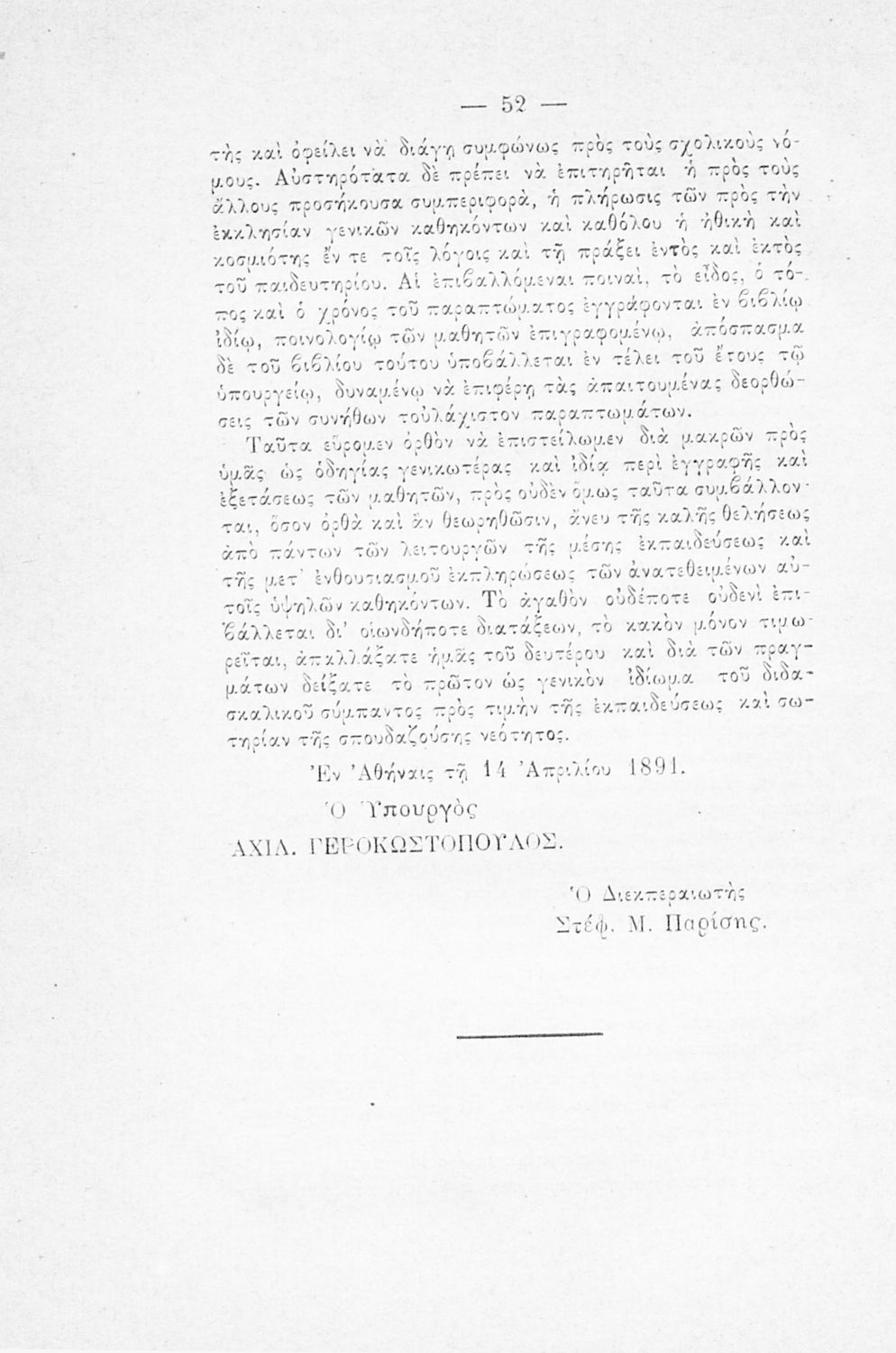 520 ## _aΕρμηνευτική εγκύκλιος του Βασιλικού Διατάγματος της 19ης Απριλίου 1891 για την εγγραφή και την εξέταση των μαθητών στα Γυμνάσια και Ελληνικά Σχολεία.