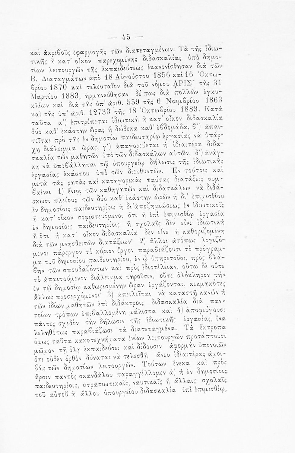 245 0# _aΒ. Διάταγμα (12 Απριλίου 1891) περί εγγραφής και εξετάσεων μαθητών και ερμηνευτική εγκύκλιος τούτου