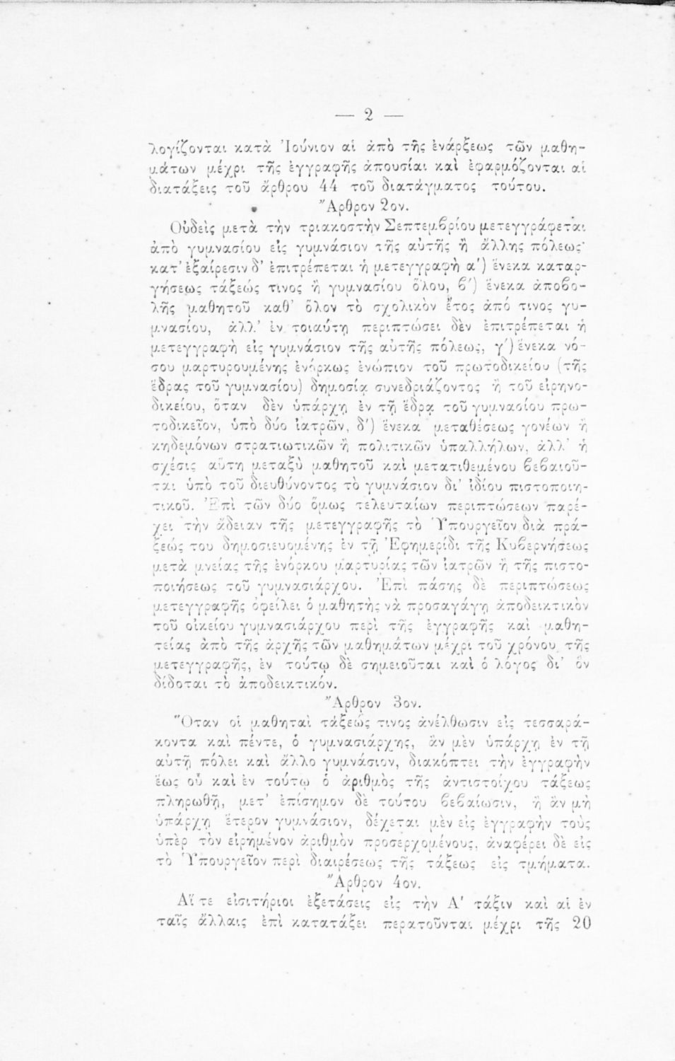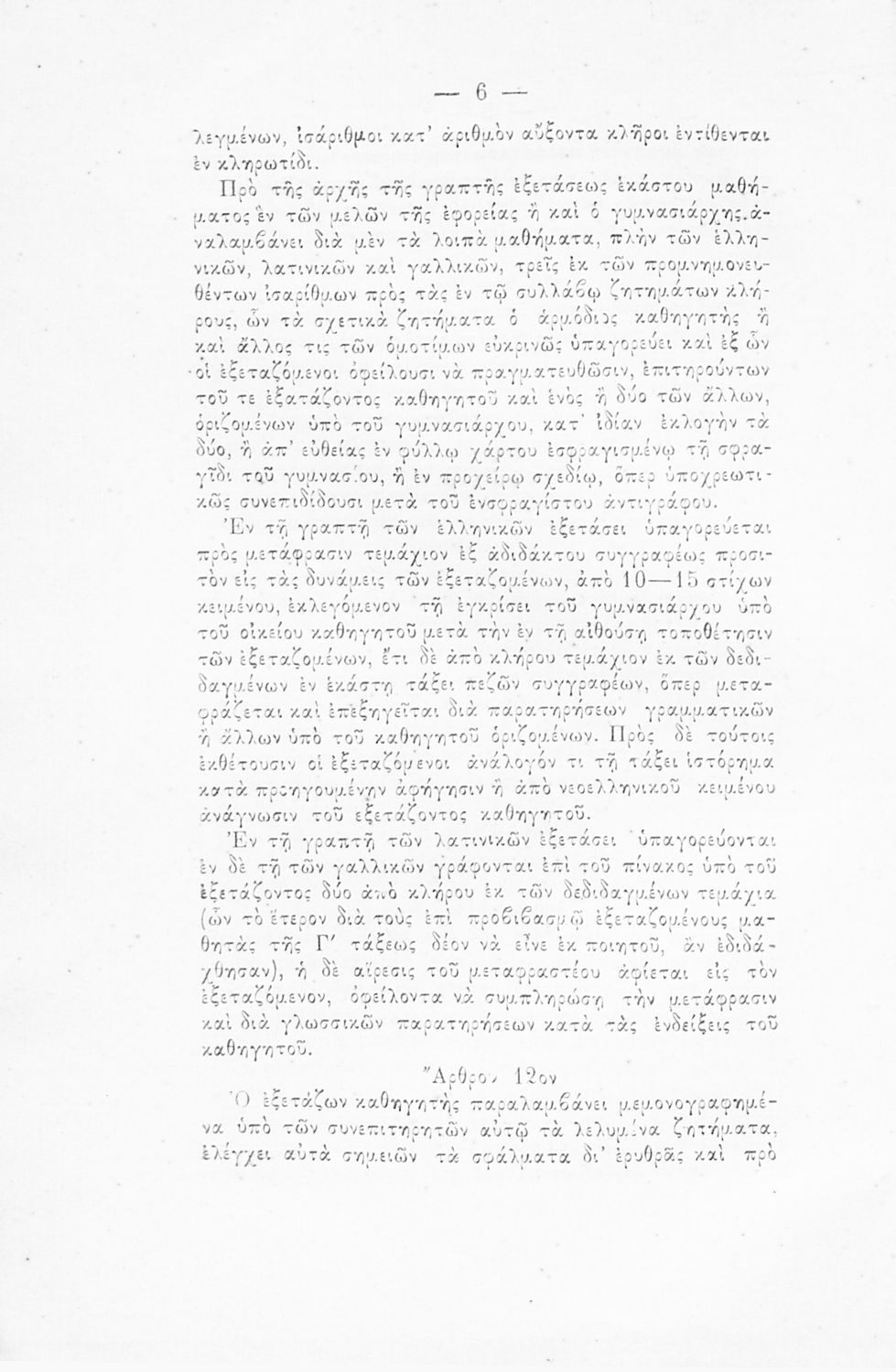 Ερμηνευτική εγκύκλιος του Βασιλικού Διατάγματος της 19ης Απριλίου 1891 για την εγγραφή και την εξέταση των μαθητών στα Γυμνάσια και Ελληνικά Σχολεία.