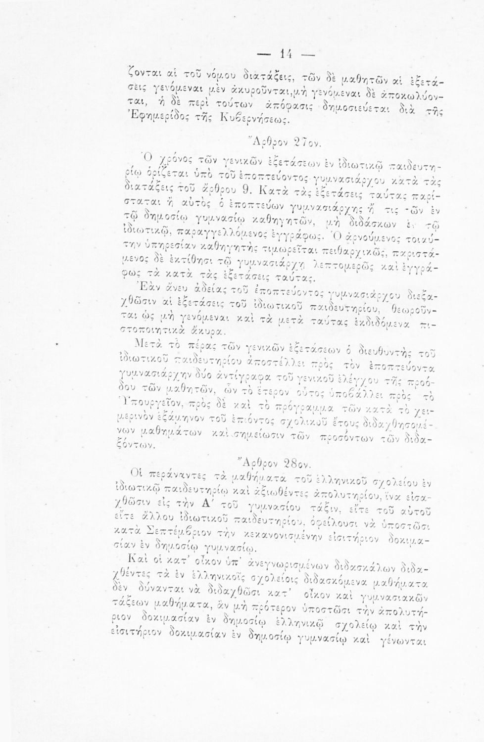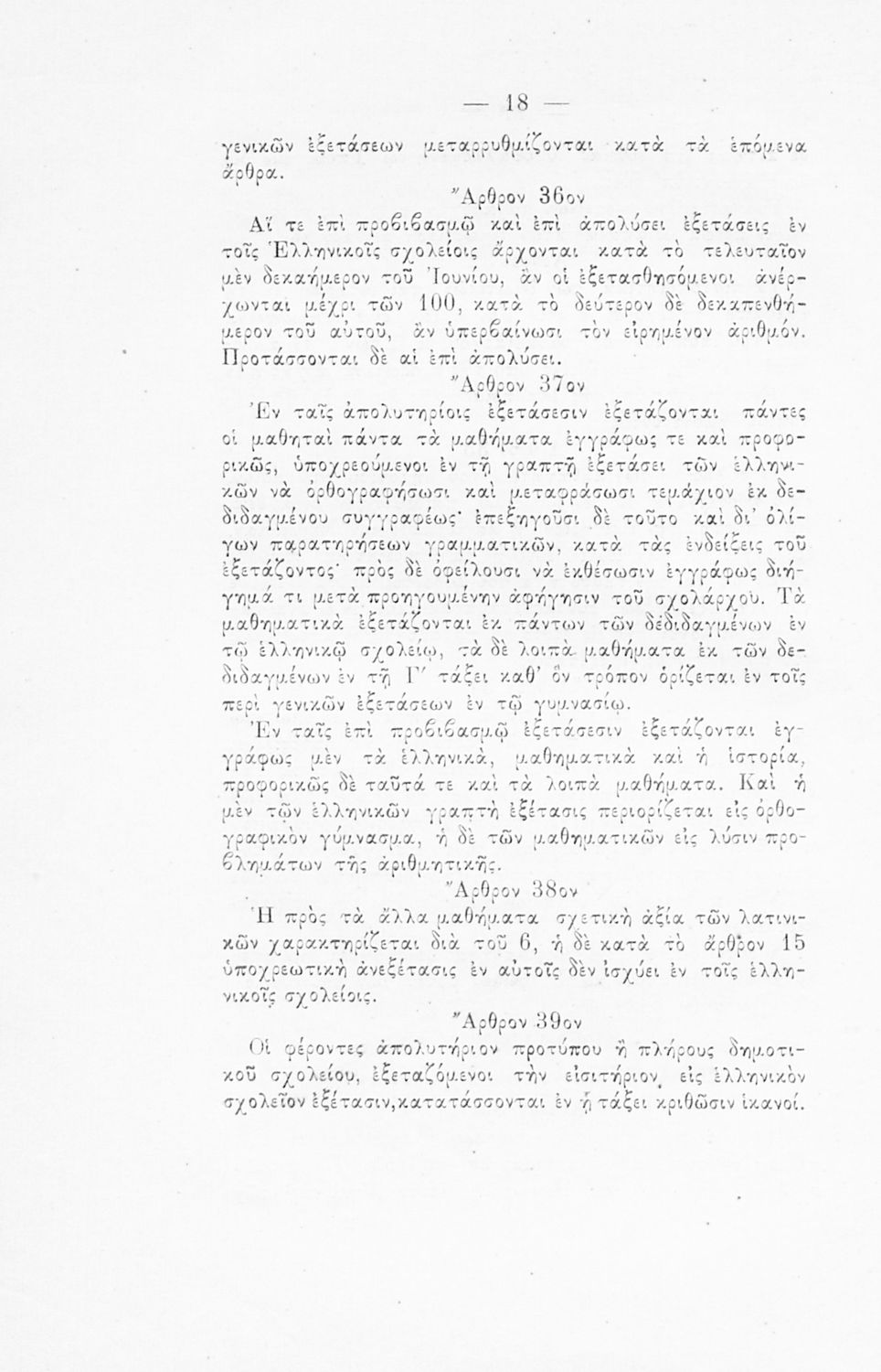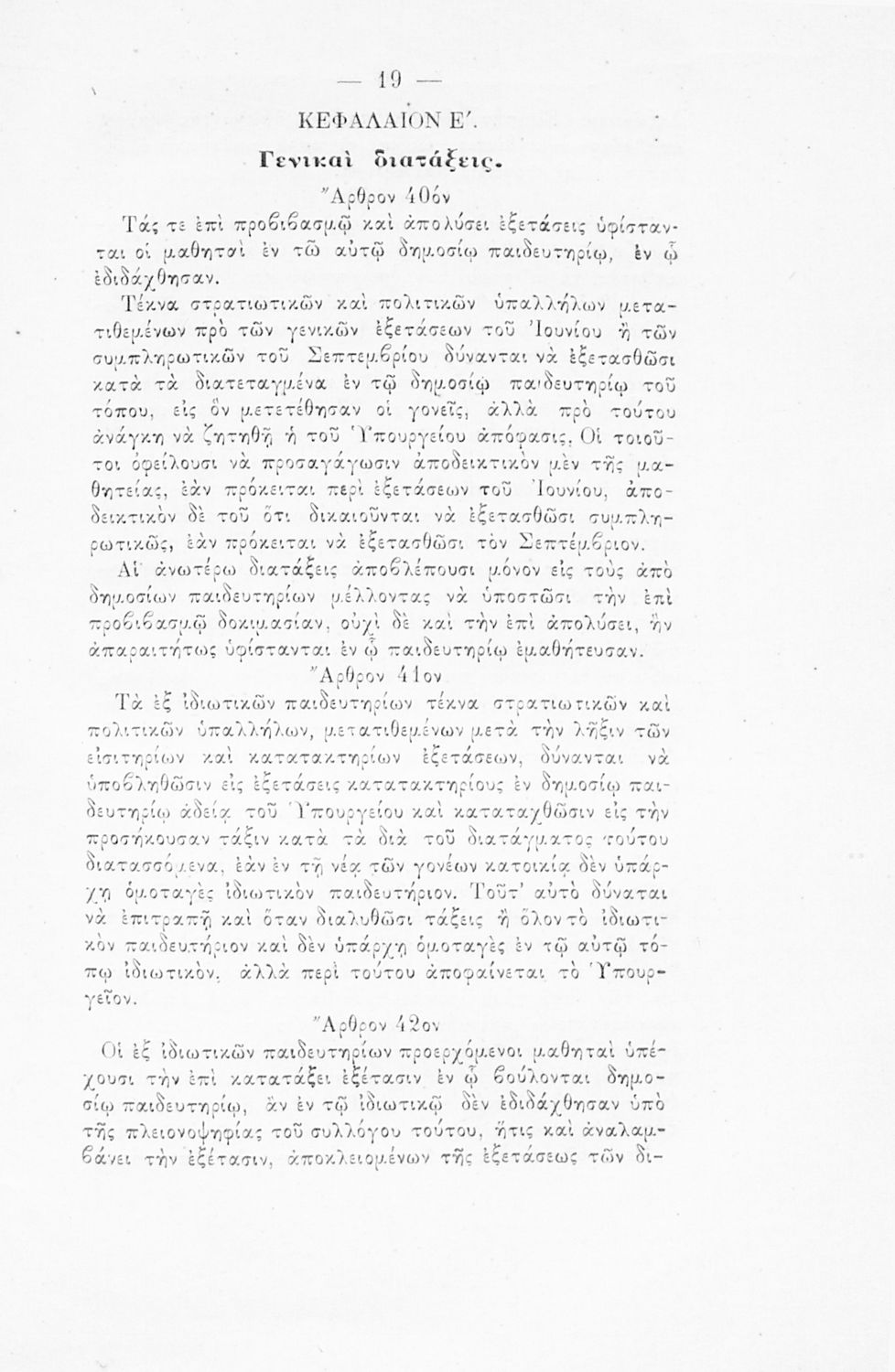 Παρουσίαση περιεχομένου: Ερμηνευτική εγκύκλιος του Βασιλικού Διατάγματος της 19ης Απριλίου 1891 για την εγγραφή και την εξέταση των μαθητών στα Γυμνάσια και Ελληνικά Σχολεία.