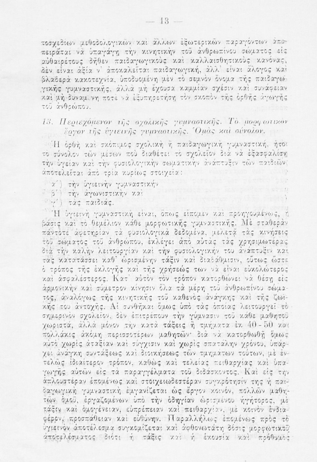 Βαθμίδα εκπαίδευσης: Δευτεροβάθμια Γλώσσα: Καθαρεύουσα Παρουσίαση περιεχομένου: Παιδαγωγικό βοήθημα που πραγματεύεται το θέμα της σωματικής αγωγής και άσκησης των μαθητών στην Μέση Εκπαίδευση και εστιάζει στις γενικές αρχές της παιδαγωγικής γυμναστικής. |