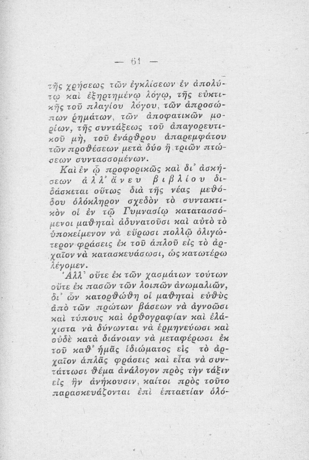 Το σύγγραμμα ήταν εκπαιδευτικό βοήθημα για το μάθημα των νέων ελληνικών. Αρχικά, έχει οδηγίες, οι οποίες απευθύνονται στους δασκάλους και τους μαθητές αντίστοιχα για την εξυπηρέτηση της διδασκαλίας. Στη ...