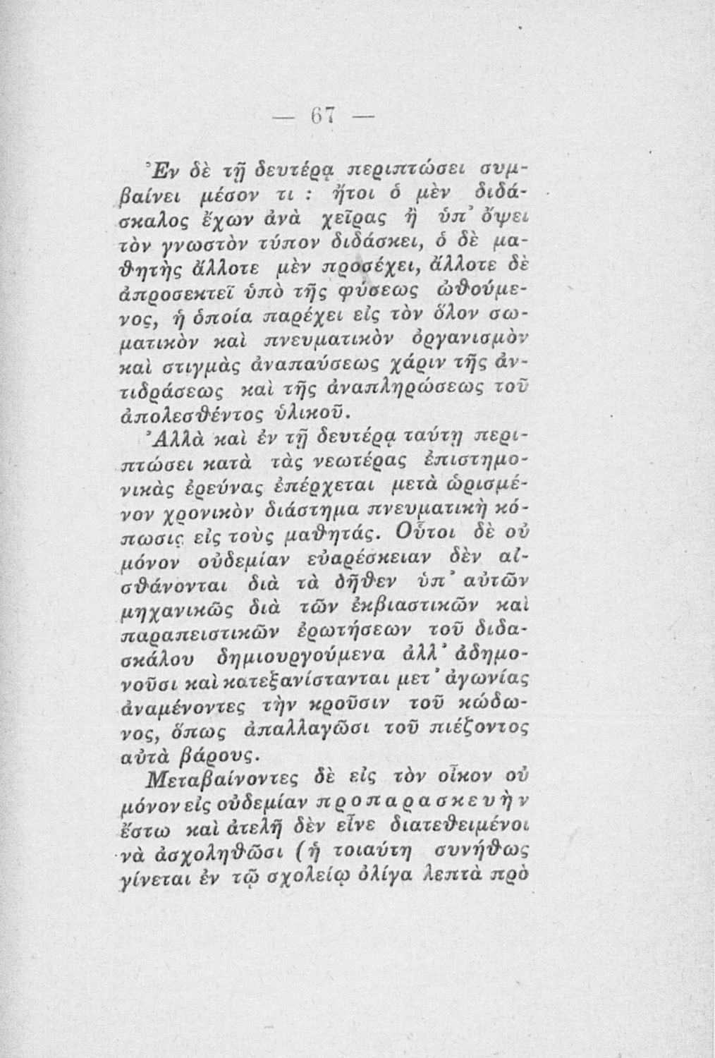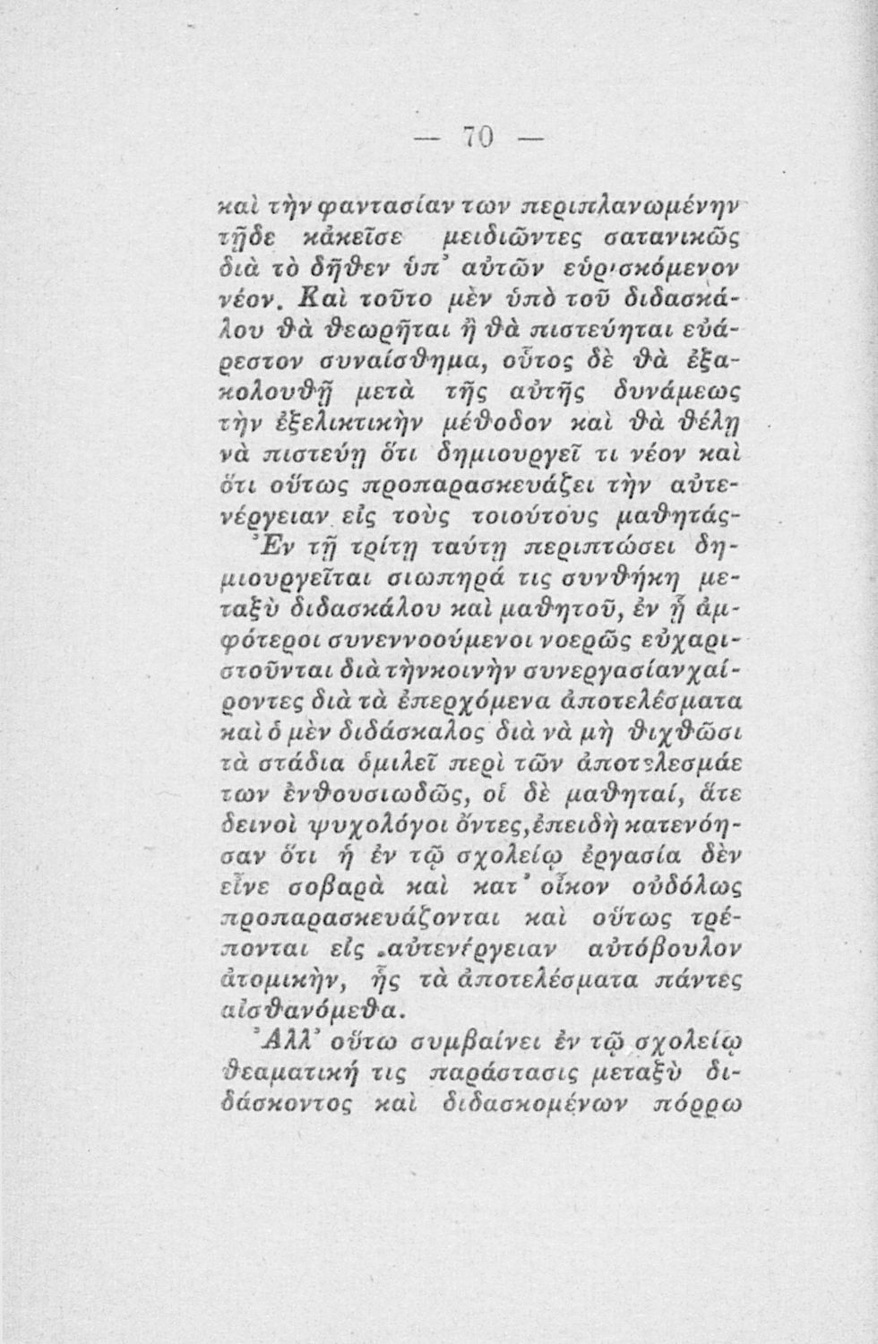 Δοκίμιο που κατά βάση απευθύνεται στους εκπαιδευτικούς της Δευτεροβάθμιας και πραγματεύεται τα προβλήματα του εκπαιδευτικού συστήματος.
