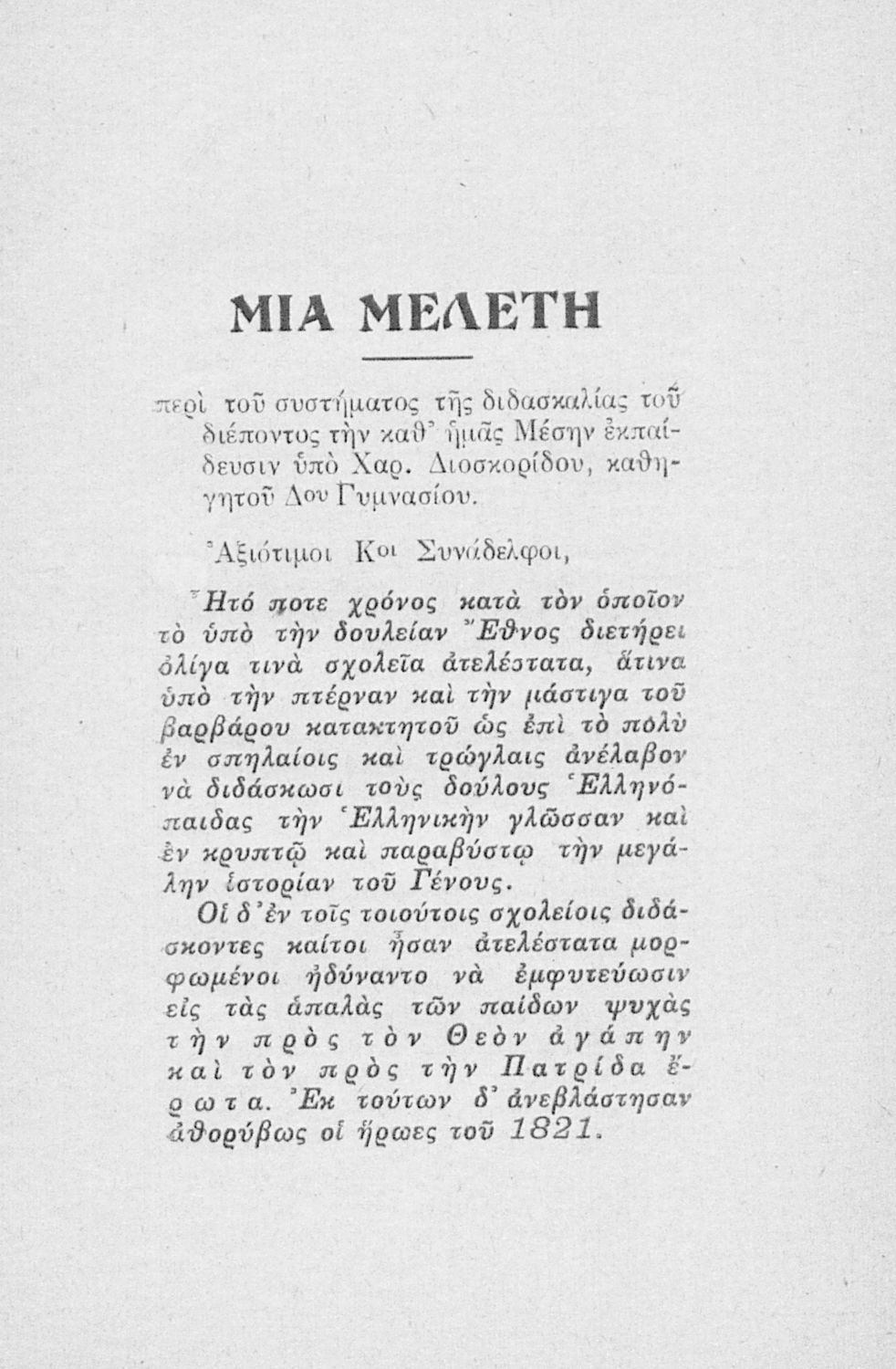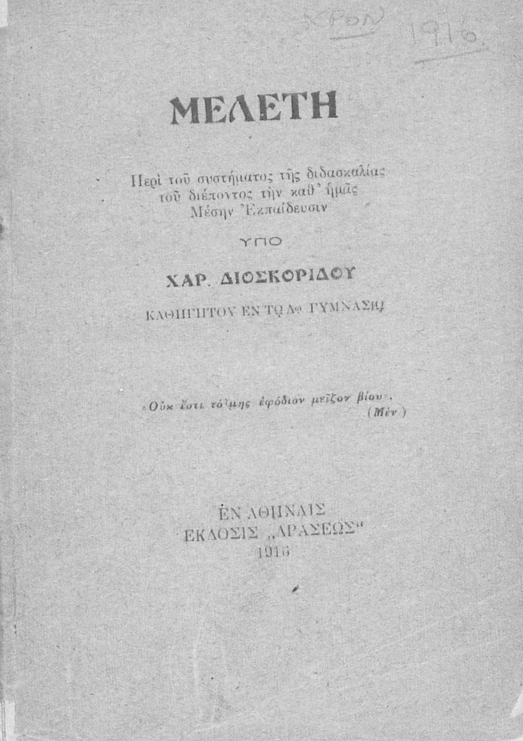 Τίτλος: Μελέτη περί του συστήματος της διδασκαλίας του διέποντος την καθ΄ ημάς Μέσην Εκπαίδευσιν