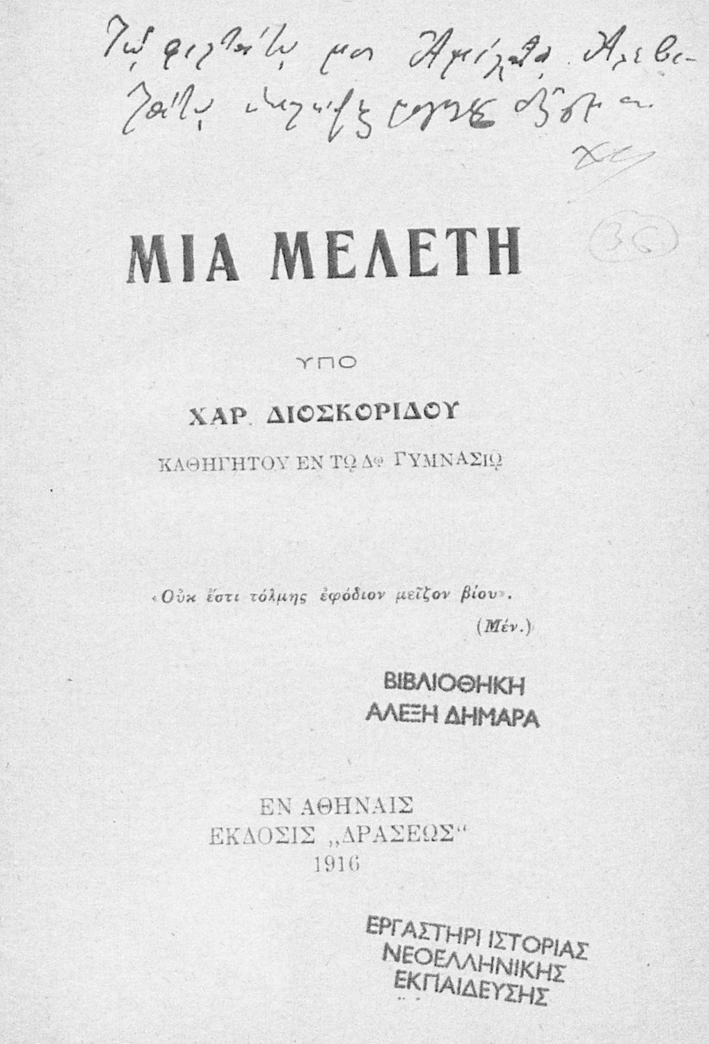 Συγγραφέας: Χαρ. Διοσκουρίδης