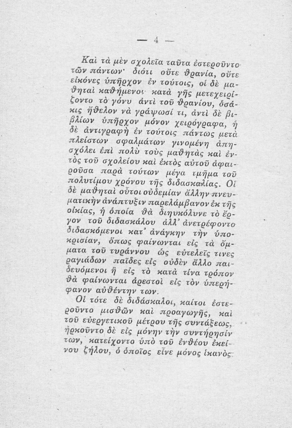 Το σύγγραμμα ήταν εκπαιδευτικό βοήθημα για το μάθημα των νέων ελληνικών. Αρχικά, έχει οδηγίες, οι οποίες απευθύνονται στους δασκάλους και τους μαθητές αντίστοιχα για την εξυπηρέτηση της διδασκαλίας. Στη ...