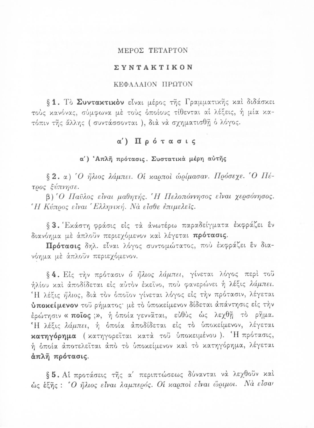 Παρουσίαση περιεχομένου: Σχολικό εγχειρίδιο Γλώσσας Δημοτικού που περιλαμβάνει τους κανόνες της γραμματικής και του συντακτικού της καθαρεύουσας.