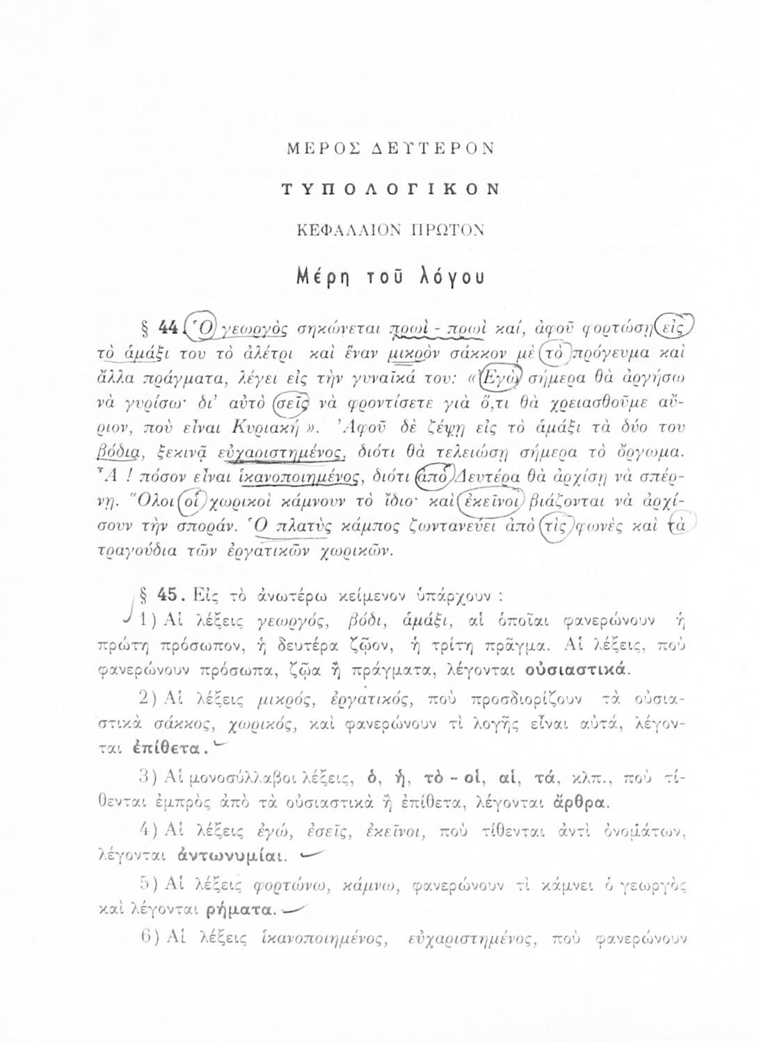 Σχολικό εγχειρίδιο που περιλαμβάνει τους κανόνες γραμματικής της νέας ελληνικής για τους μαθητές του Δημοτικού.