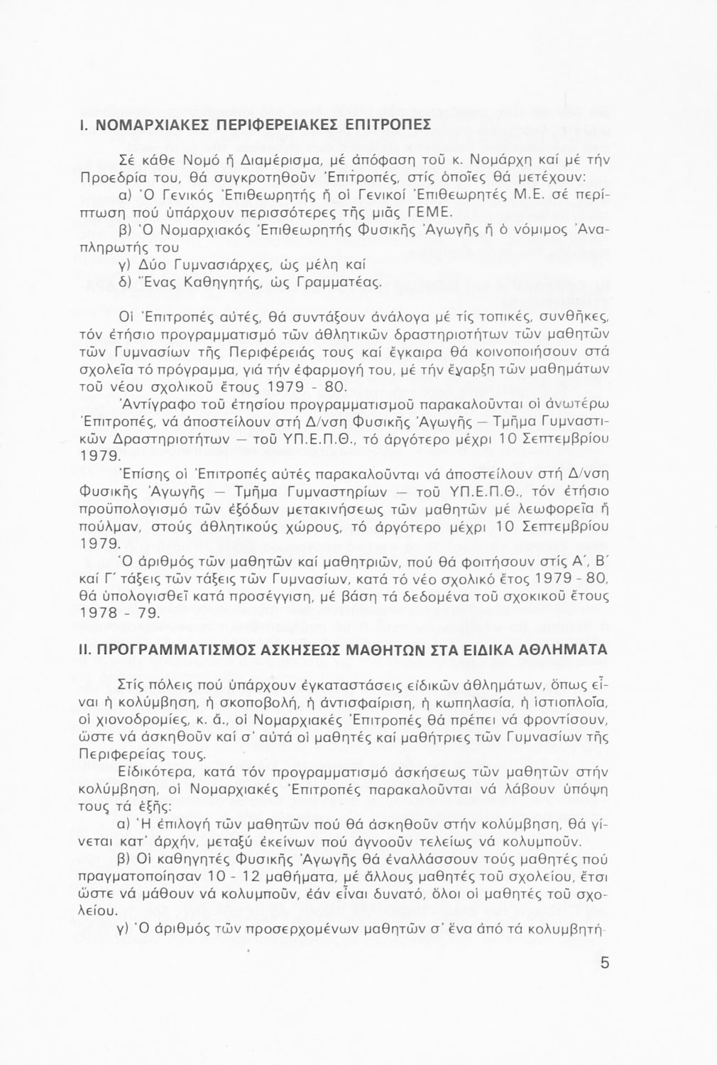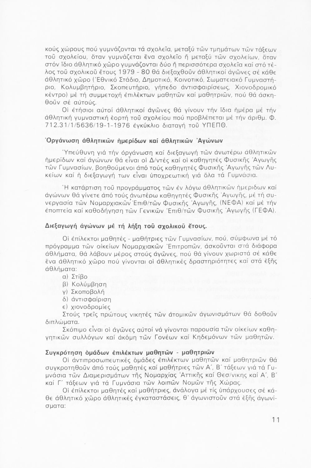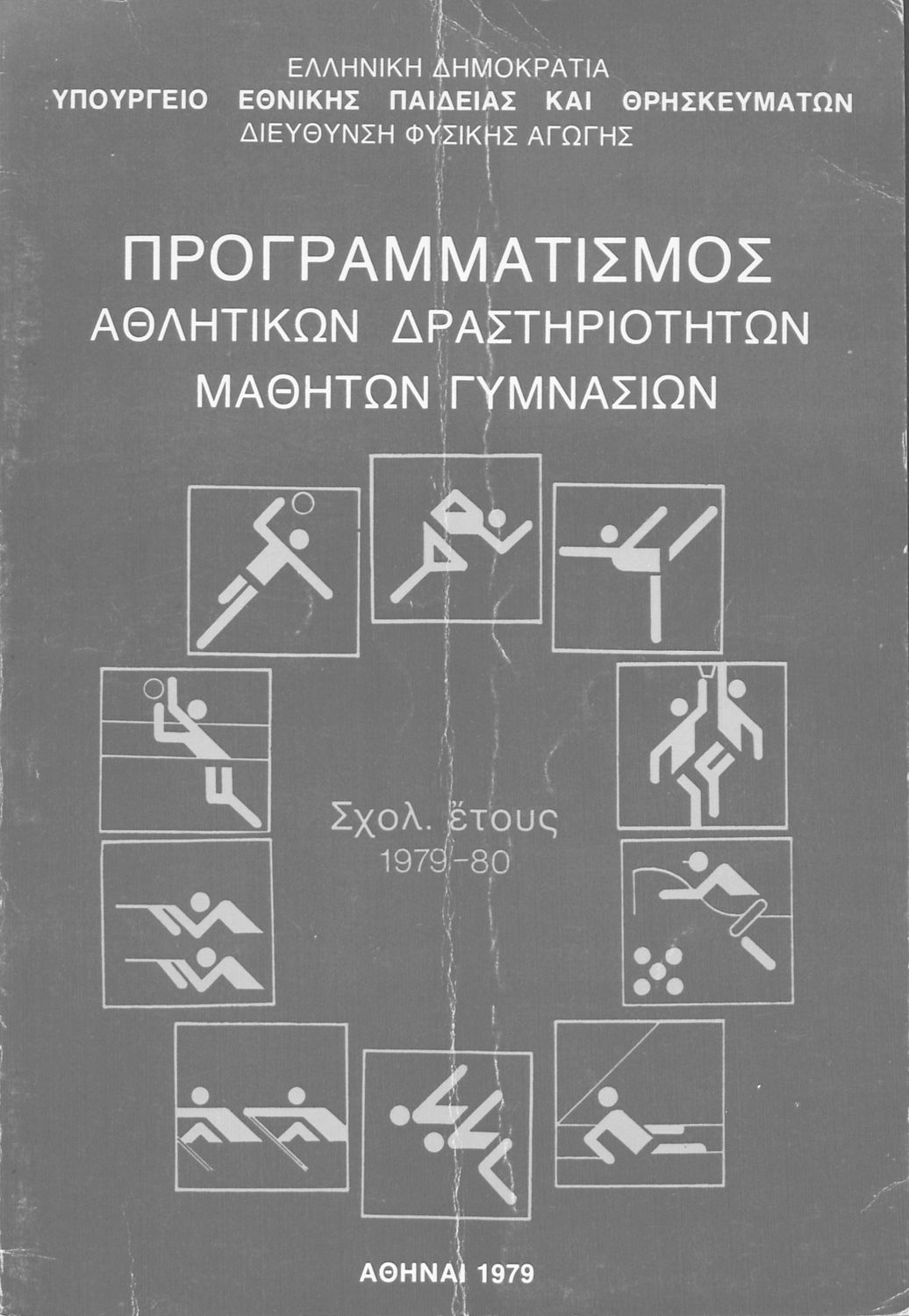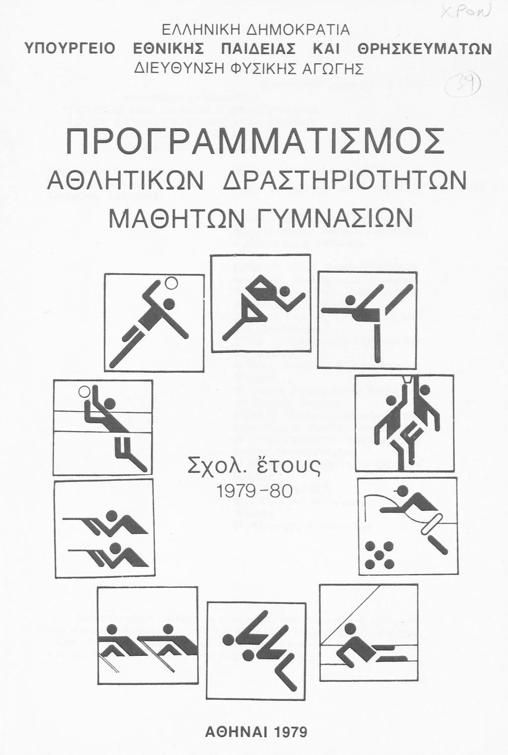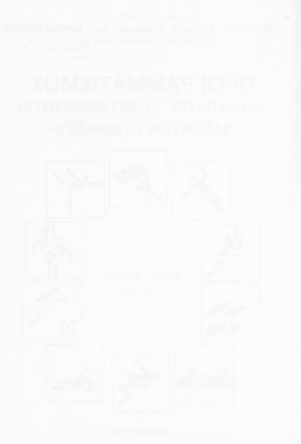 Παιδαγωγικό βοήθημα που περιλαμβάνει γενικές οδηγίες και κανόνες για τον προγραμματισμό των αθλητικών δραστηριοτήτων στις τάξεις του Γυμνασίου για το σχολικό έτος 1979-1980.